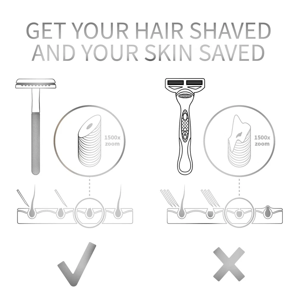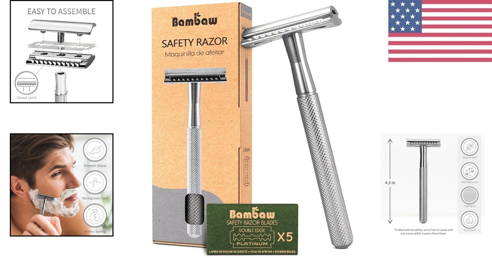 Metal Double Edge Safety Razor with 5 Blades - Cost-Effective Precision Shaving ‹ › ‹ › ‹ › ‹ › ‹ › ‹ › ‹ › ‹ › ‹ › Metal Double Edge Safety Razor with 5 Blades Experience Cost-Effective Precision Shaving Features: The Perfect Shave: Make skin irritations and ingrown hair a thing of the past. Achieve the closest shave effortlessly with our double-sided razor. Durable Construction: Crafted from high-quality, durable materials, this safety razor is designed to last a lifetime. It serves not just as a grooming tool, but as an environmentally friendly gift. Includes 5 Safety Razor Blades: Each stainless-steel blade is engineered to resist corrosion, providing a long-lasting, close, and clean shave. Comes wrapped in wax paper for safe and convenient handling. Eco-Friendly: Ditch the disposable plastic razors that harm the environment. With our metal razor, you only need to replace the double-edged blades, making it perfect for eco-conscious shaving. Cost-Effective: Save money in the long run with this vintage-style razor. Purchase eco-friendly blades as replacements for a superior shave while promoting sustainability. User Manual Included: Get guidance with a digital shaving manual that offers tips for perfecting your shave on various body parts, prolonging blade lifespan, and responsible recycling. Why Choose Our Metal Double Edge Safety Razor? Step into a world where traditional quality meets modern efficiency. This Metal Double Edge Safety Razor is engineered for the discerning individual who values both craftsmanship and sustainability. Experience the luxury of a close shave while embracing an eco-friendly ethos. Upgrade your grooming routine today with a razor that not only enhances your personal care but also contributes to a greener planet. Discover the perfect union of precision, comfort, and environmental consciousness with our Metal Double Edge Safety Razor. Shipping Free & Fast Shipping - We offer free shipping to most of the USA with a normal delivery time of 3-7 days. However, due to the current situation, additional delivery time (up to 3 weeks) may be required for some items. Alternative Carriers - We may use alternative carriers (e.g. USPS, FedEx, UPS, etc.) to ensure your package arrives safely and on time. Due to the use of multiple carriers, we are unable to provide a tracking number automatically. Handling Time - Orders are processed and shipped within 1-2 business days of receiving cleared payment. Shipping Restrictions - Shipping to Alaska, Hawaii, Puerto Rico, Guam, and other US territories may incur shipping charges or delivery restrictions. Please contact us before ordering, or your order can be refunded/cancelled. State Restrictions - There may be restrictions based on your state of purchase. For example, certain items may not be shipped to California due to state regulations. Contact for Tracking Updates - If you require tracking updates or have any concerns about the delivery of your order, please feel free to contact us, and we will be happy to assist you. Return 30-Day Hassle-Free Returns - We want you to be completely satisfied with your purchase. If you are not, you can return the item within 30 days of receiving it for a full refund or exchange. Easy Return Process - To start a return, simply contact us and we will provide you with a prepaid return shipping label and detailed instructions. Restocking Fee - There are no restocking fees for returns. However, the buyer is responsible for return shipping costs if the return is not due to a seller's error. Refund Processing Time - Refunds will be processed within 5 business days of receiving the returned item in its condition. Payment We accept all major credit cards, PayPal, and Apple Pay for your convenience. Your payment information is secure and encrypted to ensure a safe and seamless transaction. Please complete your payment within 3 days of purchase to avoid any delays in shipping. Feedback Your feedback is extremely important to us. We strive to provide the best products and customer service possible. If you are satisfied with your purchase, please take a moment to leave us a positive review. If you have any concerns or issues with your order, please contact us before leaving negative feedback. We are committed to resolving any problems and ensuring your satisfaction. Contact Us If you have any questions or concerns, please feel free to out to our customer support team. You can contact us through the eBay messaging system. We are available Monday to Friday, 9:00 am to 5:00 pm EST, and we will do our best to respond to your inquiry within 24 hours. Buy it now and enjoy a pleasant shopping experience! Material: Metal Handmade: Double Edge Safety Razor Country/Region of Manufacture: Double Edge Safety Razor