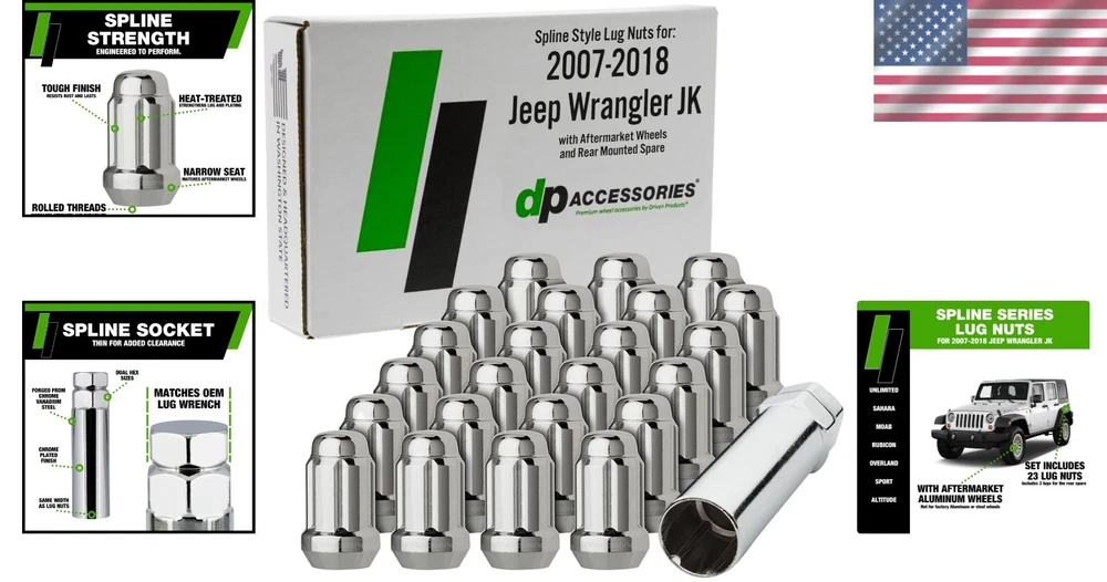 Precision-Machined Chrome Lug Nut Set with Tool for 2007-2018 Jeep Wrangler JK ‹ › ‹ › ‹ › ‹ › ‹ › ‹ › ‹ › ‹ › Precision-Machined Chrome Lug Nut Set Designed specifically for 2007-2018 Jeep Wrangler JK with custom Aftermarket Wheels, this lug nut set promises an exquisite blend of form and function. Key Features: Designed for use on Aftermarket Aluminum wheels, ensuring compatibility and optimal performance. Sturdy solid steel spline lug nuts fit the narrowest of lug holes, perfect for modern custom wheels. Beautiful chrome finish enhances the overall aesthetic of your vehicle, making your wheels shine brighter. Hardened steel construction guarantees unmatched strength and durability in various conditions. Precision-machined threads offer a smooth installation experience, reducing the risk of cross-threading. Benefits: Perfectly complements your custom wheels with a touch of elegance. Engineered for a precise fit, ensuring your wheels stay safe and secure. Durable chrome finish resists chipping and scratching, maintaining visual appeal over time. Comprehensive kit includes 23 chrome spline/tuner lug nuts and 1 installation tool. Tested and supported from Kent, Washington, boasting over 20 years of experience. Why Choose Our Chrome Lug Nut Set? Transform your Jeep Wrangler JK’s appearance with lug nuts that are as stylish as they are functional. Our lug nuts are not only designed for optimal compatibility with aftermarket wheels, but they also promise enhanced safety and performance. Whether you’re tackling rugged terrains or cruising the city streets, our chrome spline lug nuts stand ready to impress. Elevate your wheel game—order your Precision-Machined Chrome Lug Nut Set today! Shipping Free & Fast Shipping - We offer free shipping to most of the USA with a normal delivery time of 3-7 days. However, due to the current situation, additional delivery time (up to 3 weeks) may be required for some items. Alternative Carriers - We may use alternative carriers (e.g. USPS, FedEx, UPS, etc.) to ensure your package arrives safely and on time. Due to the use of multiple carriers, we are unable to provide a tracking number automatically. Handling Time - Orders are processed and shipped within 1-2 business days of receiving cleared payment. Shipping Restrictions - Shipping to Alaska, Hawaii, Puerto Rico, Guam, and other US territories may incur shipping charges or delivery restrictions. Please contact us before ordering, or your order can be refunded/cancelled. State Restrictions - There may be restrictions based on your state of purchase. For example, certain items may not be shipped to California due to state regulations. Contact for Tracking Updates - If you require tracking updates or have any concerns about the delivery of your order, please feel free to contact us, and we will be happy to assist you. Return 30-Day Hassle-Free Returns - We want you to be completely satisfied with your purchase. If you are not, you can return the item within 30 days of receiving it for a full refund or exchange. Easy Return Process - To start a return, simply contact us and we will provide you with a prepaid return shipping label and detailed instructions. Restocking Fee - There are no restocking fees for returns. However, the buyer is responsible for return shipping costs if the return is not due to a seller's error. Refund Processing Time - Refunds will be processed within 5 business days of receiving the returned item in its original condition. Payment We accept all major credit cards, PayPal, and Apple Pay for your convenience. Your payment information is secure and encrypted to ensure a safe and seamless transaction. Please complete your payment within 3 days of purchase to avoid any delays in shipping. Feedback Your feedback is extremely important to us. We strive to provide the best products and customer service possible. If you are satisfied with your purchase, please take a moment to leave us a positive review. If you have any concerns or issues with your order, please contact us before leaving negative feedback. We are committed to resolving any problems and ensuring your satisfaction. Contact Us If you have any questions or concerns, please feel free to reach out to our customer support team. You can contact us through the eBay messaging system. We are available Monday to Friday, 9:00 am to 5:00 pm EST, and we will do our best to respond to your inquiry within 24 hours. Buy it now and enjoy a pleasant shopping experience! UPC: Not Set Thread Size: 1/2-20 Material: Steel,alloy steel Placement on Vehicle: Front Features: Durable,Easy Installation Items Included: Lug Nut,Installation Tool Finish: Chrome Brand: Unbranded Type: Lug Nut Number in Pack: 23 Size: Not Set Manufacturer Part Number: Not Set OE/OEM Part Number: Not Set Color: Chrome Country/Region of Manufacture: Not Set Manufacturer Warranty: Not Set Interchange Part Number: Not Set Superseded Part Number: Not Set Vintage Part: Not Set Performance Part: Not Set Universal Fitment: Not Set