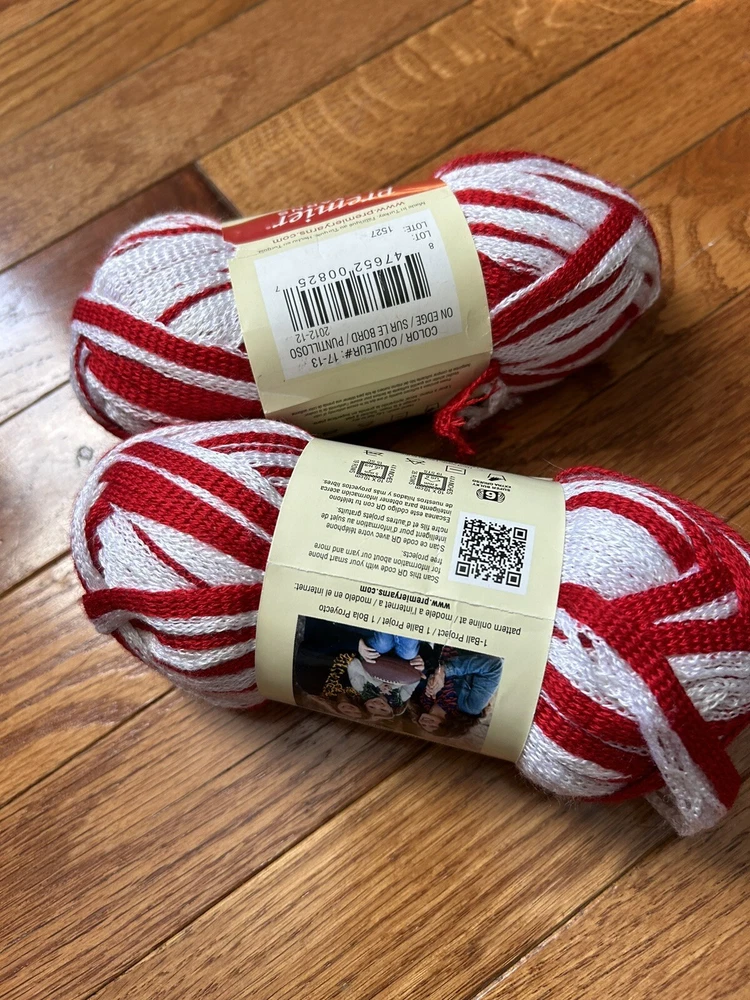 Premier Starbella team stripes red white -On Edge new ruffle yarn