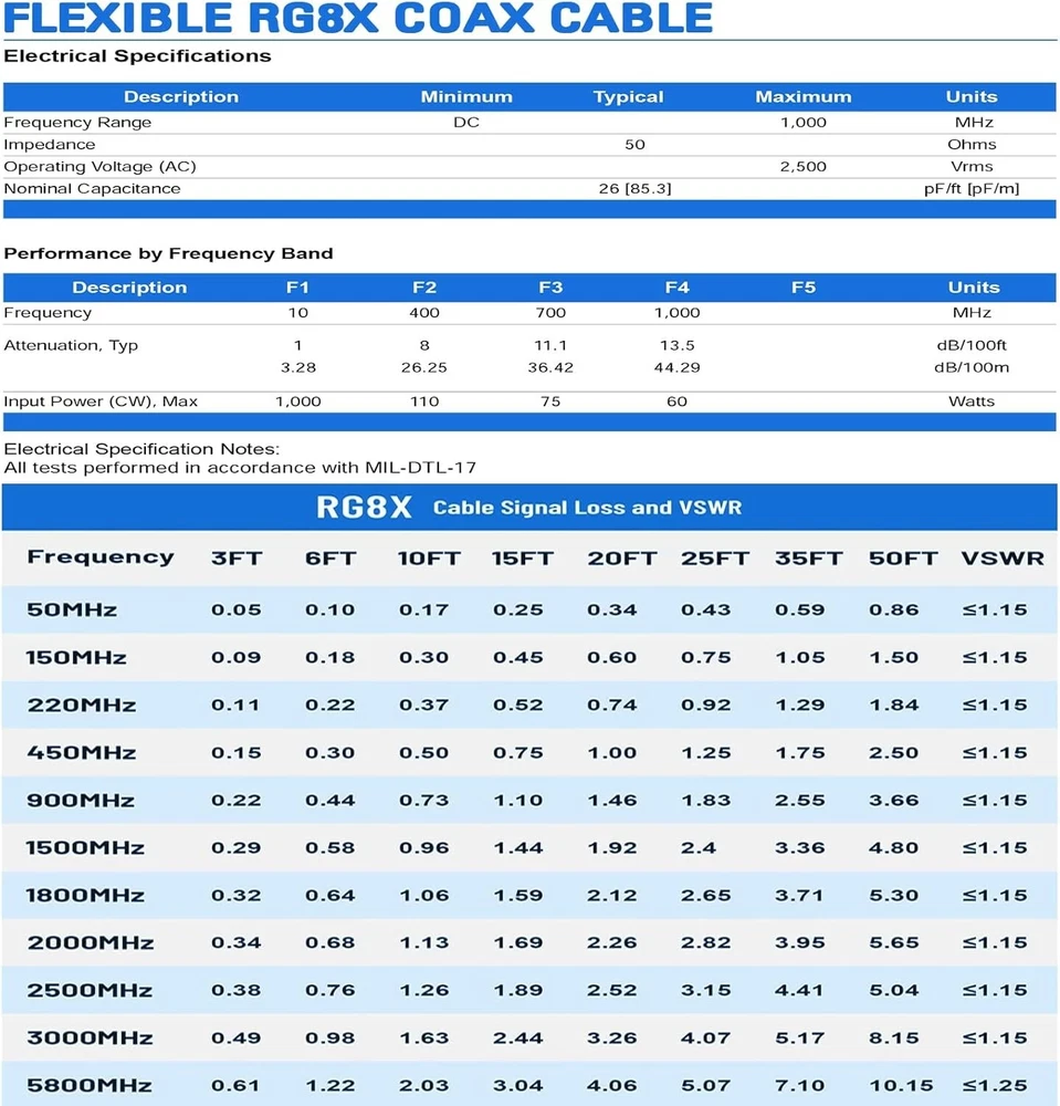 Premium 50ft RG8X Coax Cable with UHF PL259 Connectors for Antenna Systems ‹ › ‹ › ‹ › ‹ › ‹ › ‹ › ‹ › ‹ › ‹ › Premium 50ft RG8X Coax Cable Elevate your antenna systems with our top-of-the-line 50ft RG8X coax cable , featuring robust UHF PL259 connectors. Key Features: Type: CB antenna cable, UHF PL259 male to male coax cable Connectors: Nickel-plated PL259 male connectors with copper center for enhanced conductivity Utilizes a low-loss RG8X cable for optimized performance Flexible and durable PVC jacket, waterproof, sun-proof, and anti-corrosion Designed for both indoor and outdoor use, including underground installations Compatibility: Ideal for a range of applications including Yaesu, Amphenol SO joiner, outdoor j pole antennas, and Browning base antennas Perfect for vehicles, trucks, vans, RVs, yachts, and sailing applications Versatility: Compatible with antenna analyzers, dummy loads, antenna tuners, coax switches, VHF/UHF radios, transceiver duplexers, radio scanners, CB amateur radios, and standing wave meters Enhances the performance of folded dipole antennas and handheld radios Quality Assurance: Your safety and satisfaction are our top priorities. Our PL259 cables are manufactured to the highest standards, ensuring reliability and performance every time. We proudly offer a one-month replacement guarantee for any defective products. If you encounter any issues, please contact our dedicated customer support who are ready to assist you. Why Choose Our Premium RG8X Coax Cable? Invest in an uncompromising connection for your antenna systems. With unparalleled flexibility, durability, and extensive compatibility, our 50ft RG8X coax cable ensures your communications are seamless and efficient, whether on the road, at sea, or at home. Don’t miss the opportunity to enhance your radio experience - order yours today! Shipping Free & Fast Shipping - We offer free shipping to most of the USA with a normal delivery time of 3-7 days. However, due to the current situation, additional delivery time (up to 3 weeks) may be required for some items. Alternative Carriers - We may use alternative carriers (e.g. USPS, FedEx, UPS, etc.) to ensure your package arrives safely and on time. Due to the use of multiple carriers, we are unable to provide a tracking number automatically. Handling Time - Orders are processed and shipped within 1-2 business days of receiving cleared payment. Shipping Restrictions - Shipping to Alaska, Hawaii, Puerto Rico, Guam, and other US territories may incur shipping charges or delivery restrictions. Please contact us before ordering, or your order can be refunded/cancelled. State Restrictions - There may be restrictions based on your state of purchase. For example, certain items may not be shipped to California due to state regulations. Contact for Tracking Updates - If you require tracking updates or have any concerns about the delivery of your order, please feel free to contact us, and we will be happy to assist you. Return 30-Day Hassle-Free Returns - We want you to be completely satisfied with your purchase. If you are not, you can return the item within 30 days of receiving it for a full refund or exchange. Easy Return Process - To start a return, simply contact us and we will provide you with a prepaid return shipping label and detailed instructions. Restocking Fee - There are no restocking fees for returns. However, the buyer is responsible for return shipping costs if the return is not due to a seller's error. Refund Processing Time - Refunds will be processed within 5 business days of receiving the returned item in its original condition. Payment We accept all major credit cards, PayPal, and Apple Pay for your convenience. Your payment information is secure and encrypted to ensure a safe and seamless transaction. Please complete your payment within 3 days of purchase to avoid any delays in shipping. Feedback Your feedback is extremely important to us. We strive to provide the best products and customer service possible. If you are satisfied with your purchase, please take a moment to leave us a positive review. If you have any concerns or issues with your order, please contact us before leaving negative feedback. We are committed to resolving any problems and ensuring your satisfaction. Contact Us If you have any questions or concerns, please feel free to reach out to our customer support team. You can contact us through the eBay messaging system. We are available Monday to Friday, 9:00 am to 5:00 pm EST, and we will do our best to respond to your inquiry within 24 hours. Buy it now and enjoy a pleasant shopping experience! UPC: Not Set Unit Quantity: 1.0 FCC ID: Not Set Item Height: Not Set Item Length: Not Set Item Width: Not Set Connector A: PL-259 Male Connector B: PL-259 Male Features: Low Loss,Waterproof,Anti-Interference Compatible Brand: Not Set Compatible Model: Universal,For CB Ham Radio,For Antenna Analyzer,For Tuner,For Switch,For Scanner,For Dummy Load,For SWR Meter Brand: Unbranded Type: Coaxial Cable Cable Length: 50 ft Connection Split/Duplication: 1:1 Output Voltage: 1500 V MPN: Not Set Unit Type: ft Color: 50ft Country/Region of Manufacture: Not Set Fiber Type: Not Set Gauge: Not Set Manufacturer Warranty: Not Set