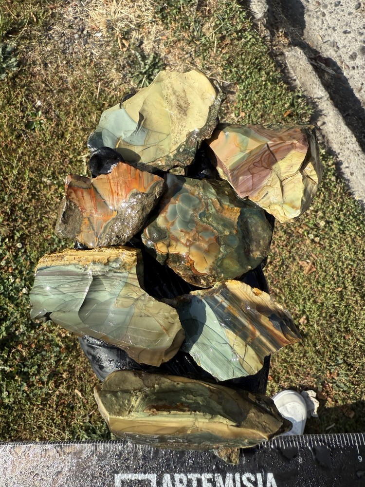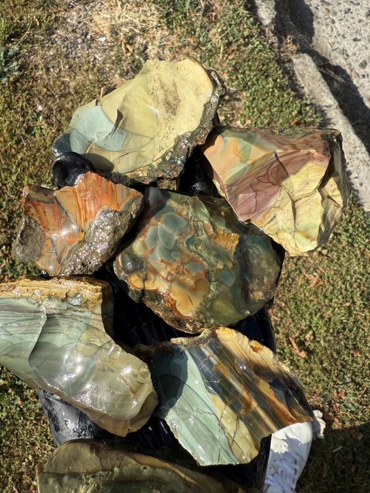 Listed is a very nice lot of small high grade blue mountain jasper pieces, with odd shapes but great pattern These pieces weigh just over a pound total Good luck with the bidding! Message me with questions :)