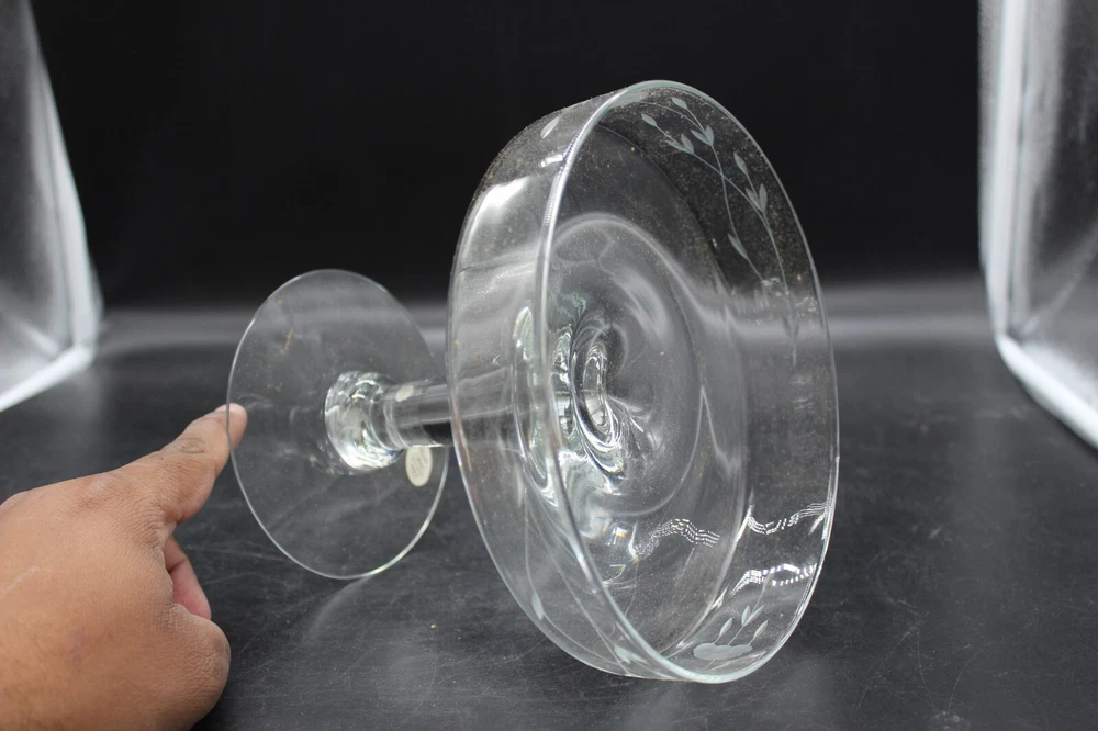 Material:CrystalFeatures:EtchedProduct Line:HeritageHandmade:YesType:Cake StandVintage:NoItem Height:6 1/2”Number of Items:1Brand:Princess HouseColor:ClearItem Width:7 1/2”Shape:RoundCountry/Region of Manufacture:United States