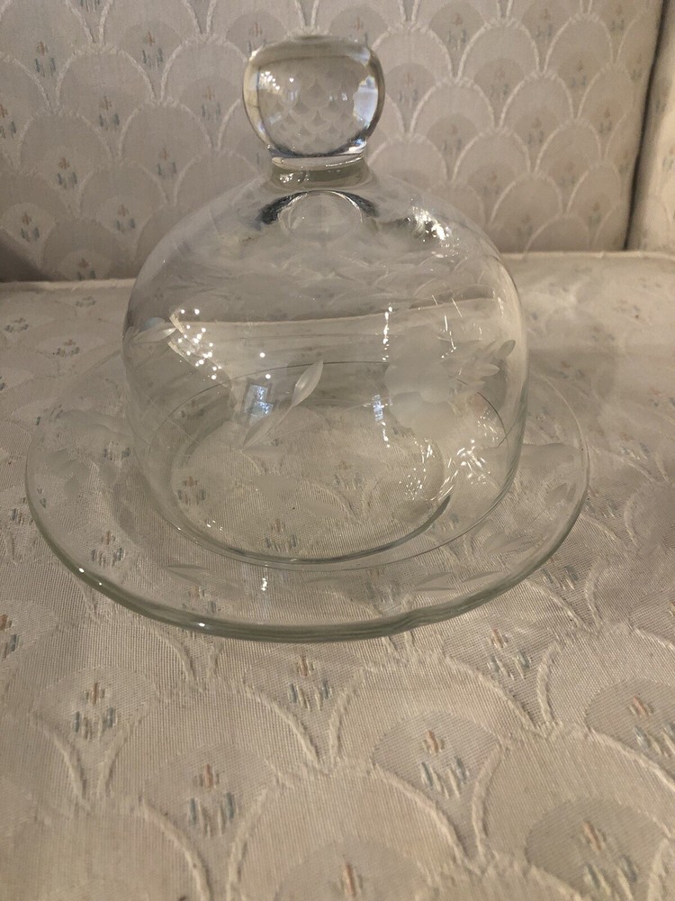 Princess House Etched Butter Dome or cheese ball display dish. Very nice. Could display cupcake too for princess birthday!