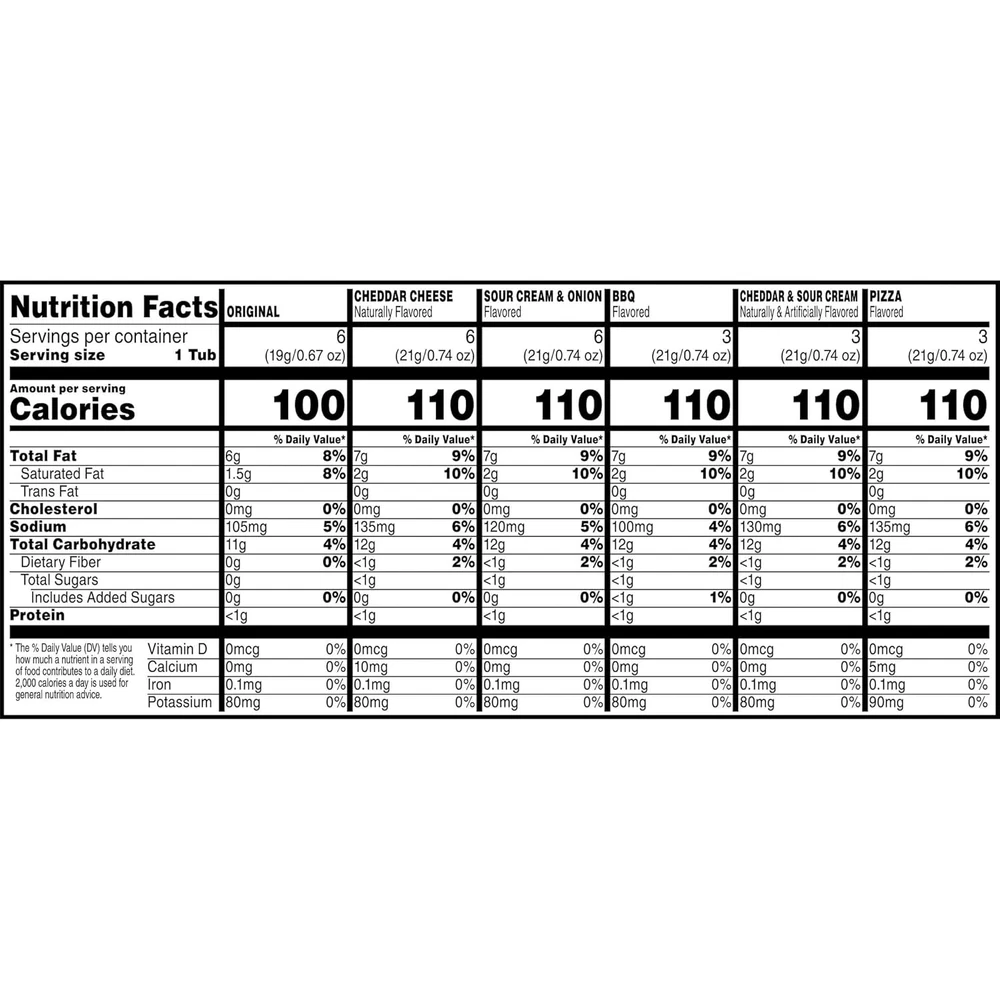Enjoy snacking moments everywhere with the outrageously delicious flavor and fun shape of these ready-to-go Pringles Potato Crisps in all your favorite flavors Convenient cups of stackable potato crisp varieties seasoned to savory perfection from edge to edge Original is Kosher Pareve; Sour Cream and Onion, Cheddar Cheese, BBQ, Pizza, and Cheddar and Sour Cream are Kosher Dairy; Variety Pack contains milk and wheat ingredients Pack into a school lunch box, backpack or tote bag Variety pack includes 27 cups of ready to eat potato crisps; Original (six), Sour Cream and Onion (six), Cheddar Cheese (six), BBQ (three), Cheddar and Sour Cream (three), and Pizza (three) What comes after opening this pack of portable Pringles Snack Stacks? The crisp, tantalizing taste of potato and choice of six enticing flavors. Includes 27, handheld, single-serve cups of ingeniously shaped Pringles Potato Crisps in Original, Sour Cream and Onion, Cheddar Cheese, BBQ, Pizza, Cheddar and Sour Cream. Insanely light, crispy, and never greasy, each flavor is uniquely delicious. Convenient, individual size cups let you create snacking moments whenever, wherever; Grab a cup as a pick-me-up for after school or pack into lunch boxes. Stash cups in your work desk, stock up your pantry or take your favorite flavors in the car to enjoy anytime. Get your hands on this Pringles Snack Stacks Potato Crisps Variety Pack for irresistible flavor options that keep you coming back.