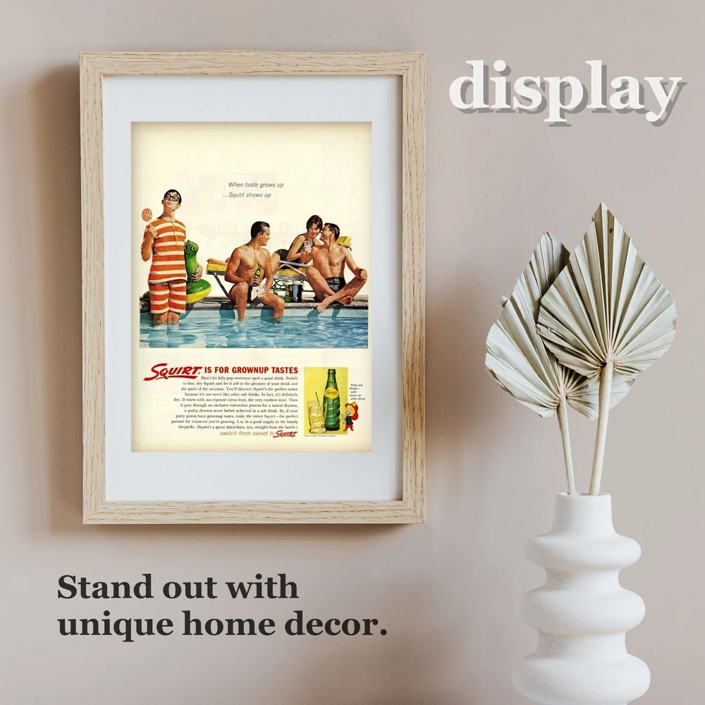 This magazine page measures approximately 8 inches by 10 3/4 inches. Acceptable vintage condition with some edge wear and age-related yellowing. Shipped flat. Frame not included. Vintage magazine ads are a fun and affordable way to own a piece of the past. While some collectors might focus on a particular brand or product, others are interested in graphic design and its transformation through the decades. Framed and hung on the wall these ads add a unique statement to any room! Yesterday's marketing ephemera has become today's conversation pieces.