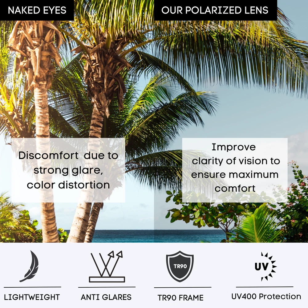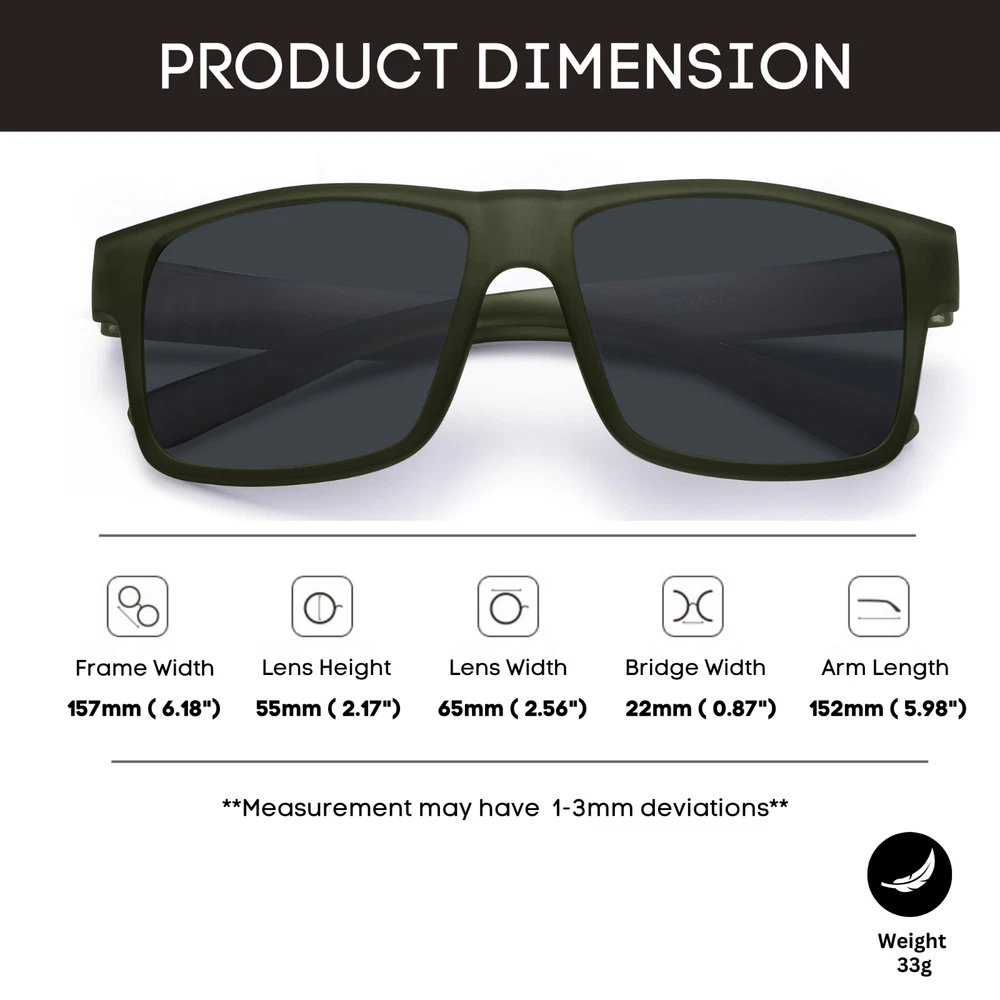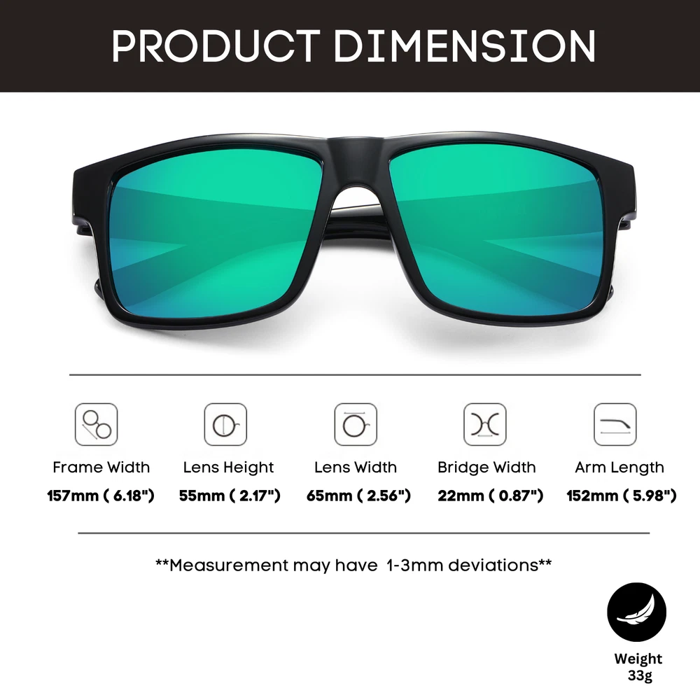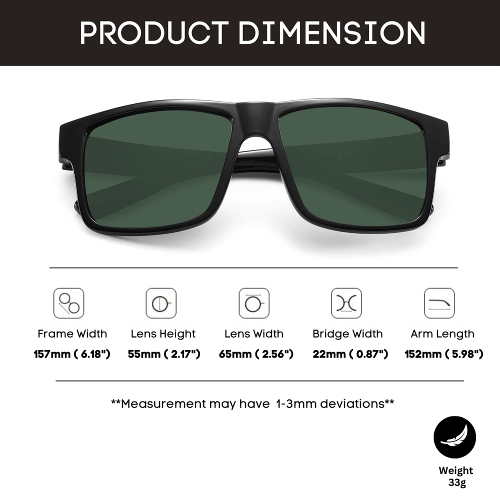 Product Features [Guarantee Big] - You've tried everything on the market but all of the sunglasses are still a little small. If there is one thing that makes our sunglasses stand out from the rest, it's the fact that they fit you perfectly. No more dealing with head pinches, no more feeling uncomfortable and ridiculous in small shades, no more wishing for sunglasses that fit you! [Polarized Lenses] - Our TAC polarized lenses offer clear vision on bright days, reduce glare and reflection, filter out 99.99% of UVA & UVB rays, and provide increased contrast with minimal color distortion. They are perfect for outdoor activities such as fishing, hiking, driving, or spending time at the beach, while keeping your eyes healthy and clear. [TR90 Frame] - The TR90 frame is made of thermoplastic materials that are both durable and flexible, yet lightweight compared to typical plastic frames. This flexibility makes it highly resilient to damage and less likely to break or bend from impact. Additionally, the frame is ultra-lightweight, allowing for comfortable and long-lasting wear. [Product Dimension] - Frame Width : 157mm (6.18") | Lens Height : 55mm (2.17") | Lens Width : 65mm (2.56") | Bridge Width : 22mm (0.87") | Temple Length: 152mm (5.98") [30 Day Money Back] - We're dedicated to providing amazing products that resonate with you at honest prices. Our customers are covered by a 30-day money-back guarantee. If, for any reason, the purchase is unsatisfactory, customers can return the unit and receive a refund. Trying our products comes with no risk, and we're committed to providing you with the best possible service.