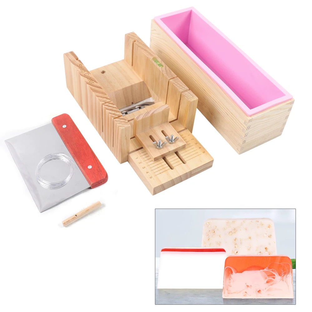 Pro Soap Making Supplies Kit 3 pcs Set Soap Tools Cakes Mold Handmade DIY NEW 3PCS Soap Making Tool Kit Loaf Soap Mould Adjustable Wooden Soap Cutter Slicer Gift Description: Name: Soap cutter set Style: modern and simple Process: grinding, polishing Specification: 3PCS set Material: wood+silicone+stainless steel Product Size: Wooden mold box :9.6"*2"*2.8" Wooden Soap cutter Mold :10.8""*3.5"*5" Straight knife: 5.9"*4.3" Function: used to make handmade soap candles, cakes, etc. Applicable occasions: holidays, weddings, birthdays, full moons, travel commemorations, graduations, parties, etc. Features: 1. Multifunctional: suitable for cutting soap and candles 2. The surface of the accessories is smooth and easy to clean 3. Adjustable thickness: clear scale reading, you can adjust the thickness of soap, easy to observe during operation, easy to get the correct soap size you need. 4. High quality and easy to clean: made of exquisite solid wood and food grade stainless steel, safe high temperature resistance, corrosion resistance, long service life Tips: When You Start To Make A Soap, You Need To Put The Silicone Mold Into The Wood Box. And Then Pour Liquid Soap Into The Silicone Mold. After The Liquid Soap Is Harden, You Take Out The Silicone Mold And Take Out The Soap. Wire Cutter Should Be Used When The Soap Is Still A Bit Soft. Packing list: 1*Wooden box with silicone container 1*Wooden Soap cutter Mold 1*Straight knife Packing size: 29*17*13cm/11.4"*2.7"*5.2" Package weight: 1.35kg/3lb Payment Delivery details Terms of sales About us Contact us Payment We accept ebay payment 。 Fees such as import duties, taxes are not included in the item price or shipping costs. These charges are the buyer's responsibility. Delivery details Shipping: 2-9 working days to: USA Terms of sales We maintain high standards of excellence and strive for hundred percent customer satisfaction. Feedback is very important to us. We hope that you contact us immediately before you give neutral or negative feedback, so that we can address your concerns. It is impossible to address issues if we do not know about them! About us Your satis faction is our ultimate goal. We work hard to earn your trust and future business. Our certified technicians have tested each item before shipping. The unit comes with 1 year limited warranty on all manufacturing defects. a) If you receive a defective item, you may return it or ask for a discount. Please contact us within 14 days after you receive the package. b) What you returned must be intact and in its original packaging as re? u. Customer is responsible for shipping costs of the returned item. c) We will cover the cost of shipping back t with the shipping rate indicated in the registration page. We will send you a new unit or refund the full payment you paid. Thank you. Contact us Business Hour Business Hour: Monday To Friday: 8:30 AM to 5:00 PM (Beijing China time) Due to time zones, our reply to your questions may not be immediately. But within above working time, we will reply your email within 24 hours. If it's non-workdays, please kindly be patient and wait till Monday. Please contact us with ebay message. Please feel free to contact us if you have any questions. Monday To Friday: 8:30 AM to 5:00 PM (Beijing China time) Due to time zones, our reply to your questions may not be immediately. But within above working time, we will reply your email within 24 hours. If it's non-workdays, please kindly be patient and wait till Monday. Please contact us with ebay message. Please feel free to contact us if you have any questions.