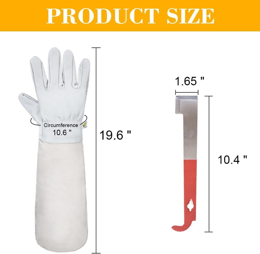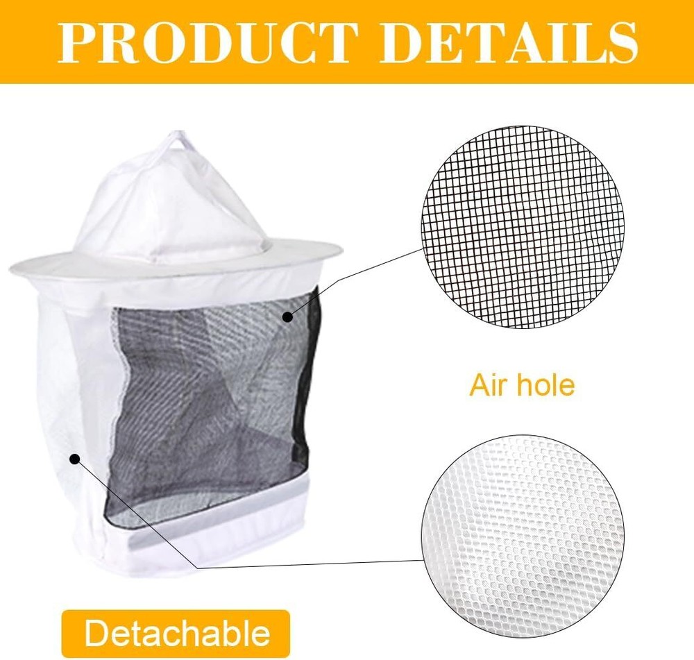 Item description from the seller Protección de cuerpo completo: este traje de apicultor brinda una protección fantástica contra las picaduras con una chaqueta de tela liviana (que incluye una capucha con velo), pantalones y guantes de apicultura de cuero de piel de cabra. Ventilación y comodidad: el velo de malla proporciona una excelente visibilidad y transpirabilidad. Amplio espacio para la cabeza para el movimiento; ajuste perfecto elástico en cintura, muñecas y tobillos para asegurar que las abejas no puedan entrar. Tamaño del traje de abeja: longitud de la prenda: 30.3 pulgadas, circunferencia del pecho: 56.6 pulgadas, hombro cruzado: 29.5 pulgadas, agujero del brazo recto: 11.4 pulgadas, longitud de la manga: 24.4 pulgadas, cintura mínima: 11 pulgadas, cintura máxima: 21.6 pulgadas, longitud del pantalón. : 45 pulgadas. Guantes profesionales de apicultura: los guantes están hechos de piel de cabra suave y tela flexible, lo que le permite ser muy flexible con una variedad de herramientas y colmenas. Paquete y garantía: 1 traje de apicultura (chaqueta y pantalones) + 1 par de guantes de apicultor + 1 herramienta para colmena (gancho J). Proporcionaríamos un servicio premium las 24 horas para ayudar a resolver problemas.