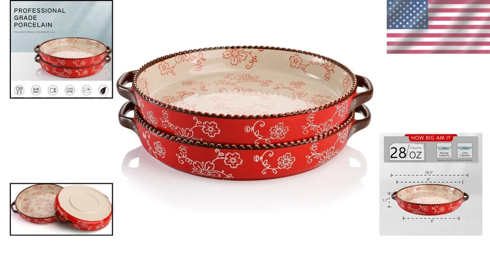Pro-Grade Double Handle Pie Pan Set - Safe, Elegant Bakeware for Every Occasion ‹ › ‹ › ‹ › ‹ › ‹ › ‹ › ‹ › ‹ › Pro-Grade Double Handle Pie Pan Set Safe, Elegant Bakeware for Every Occasion Versatile Baking Dish: Porcelain baking dish set of 2, each measuring 10.3" L * 9" W * 1.7" H (including handles). Approx. 28 fl oz normal capacity, perfect for a variety of dishes such as: Apple or pumpkin pie Chicken pot pie Lasagna Roasting vegetables Spaghetti Macaroni and cheese cake Pot roast Casserole Pro-Grade Ceramic: Made from glazed ceramic material, resistant to staining, odors, and cracking. Lead-free, non-toxic, and mercury-free, ensuring your food is safe from harmful toxins. Unique Style Design: Ceramic baking dish features a gear-shaped edge and a graceful sakura pattern. Add a touch of elegance to your tablescape and impress your guests. Easy to Clean: Cleanup is a breeze with smooth porcelain texture – hand wash or dishwasher safe! Oven, microwave, refrigerator, and dishwasher safe for your convenience. Note: Use anti-hot gloves when handling hot pie pans. Gift Choice: A perfect choice for everyday use or family parties. Great gift for housewarming, wedding parties, Mother's Day, Father's Day, Christmas, or any special occasions. Why Choose the Pro-Grade Double Handle Pie Pan Set? This elegant baking dish set is not just functional, it's a statement piece for your kitchen! Crafted from high-quality ceramic that stands the test of time and elevates your culinary presentations. Experience the joy of baking your favorite dishes while enjoying the safety and health benefits of lead-free, non-toxic materials. Transform your cooking experience with these exquisite baking pans – the ideal companion for every chef, aspiring or seasoned. Order your Pro-Grade Double Handle Pie Pan Set today and bring a touch of elegance to your kitchen! Shipping Free & Fast Shipping - We offer free shipping to most of the USA with a normal delivery time of 3-7 days. However, due to the current situation, additional delivery time (up to 3 weeks) may be required for some items. Alternative Carriers - We may use alternative carriers (e.g. USPS, FedEx, UPS, etc.) to ensure your package arrives safely and on time. Due to the use of multiple carriers, we are unable to provide a tracking number automatically. Handling Time - Orders are processed and shipped within 1-2 business days of receiving cleared payment. Shipping Restrictions - Shipping to Alaska, Hawaii, Puerto Rico, Guam, and other US territories may incur shipping charges or delivery restrictions. Please contact us before ordering, or your order can be refunded/cancelled. State Restrictions - There may be restrictions based on your state of purchase. For example, certain items may not be shipped to California due to state regulations. Contact for Tracking Updates - If you require tracking updates or have any concerns about the delivery of your order, please feel free to contact us, and we will be happy to assist you. Return 30-Day Hassle-Free Returns - We want you to be completely satisfied with your purchase. If you are not, you can return the item within 30 days of receiving it for a full refund or exchange. Easy Return Process - To start a return, simply contact us and we will provide you with a prepaid return shipping label and detailed instructions. Restocking Fee - There are no restocking fees for returns. However, the buyer is responsible for return shipping costs if the return is not due to a seller's error. Refund Processing Time - Refunds will be processed within 5 business days of receiving the returned item in its original condition. Payment We accept all major credit cards, PayPal, and Apple Pay for your convenience. Your payment information is secure and encrypted to ensure a safe and seamless transaction. Please complete your payment within 3 days of purchase to avoid any delays in shipping. Feedback Your feedback is extremely important to us. We strive to provide the best products and customer service possible. If you are satisfied with your purchase, please take a moment to leave us a positive review. If you have any concerns or issues with your order, please contact us before leaving negative feedback. We are committed to resolving any problems and ensuring your satisfaction. Contact Us If you have any questions or concerns, please feel free to reach out to our customer support team. You can contact us through the eBay messaging system. We are available Monday to Friday, 9:00 am to 5:00 pm EST, and we will do our best to respond to your inquiry within 24 hours. Thank you for supporting our small family business! UPC: Not Set Item Diameter: 9 Item Depth: 1.7 Item Height: Ceramic Pie Pan Capacity: 28 fl oz Item Length: Not Set Item Width: Not Set Model: Not Set Item Weight: 2.5 Unit Quantity: 2 Heat Resistance: Not specified Set Includes: Pie Dish,Pie Pan,Baking Dish Color: Red Features: Dishwasher Safe,Easy to Clean,Oven Safe Character: Not Set Type of Oven: Not specified Type: Pie Dish Material: Porcelain Surface Coating: Glazed Brand: Unbranded Shape: Round Time Period Manufactured: Not Set Country/Region of Manufacture: Not Set Theme: Not Set Franchise: Not specified Number of Items in Set: Two-Piece Unit Type: lb Care Instructions: Dishwasher safe Vintage: Not Set Antique: Not Set Original/Licensed Reproduction: Not Set