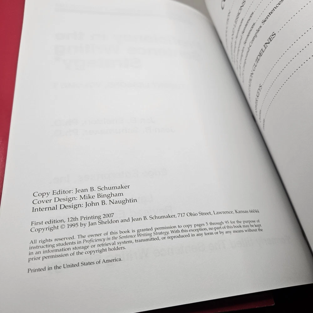Level:ProficiencyCountry of Origin:United StatesSubject:StrategyPublication Name:proficiency in the sentence writing strategyAuthor:jean b schumakerType:Workbook