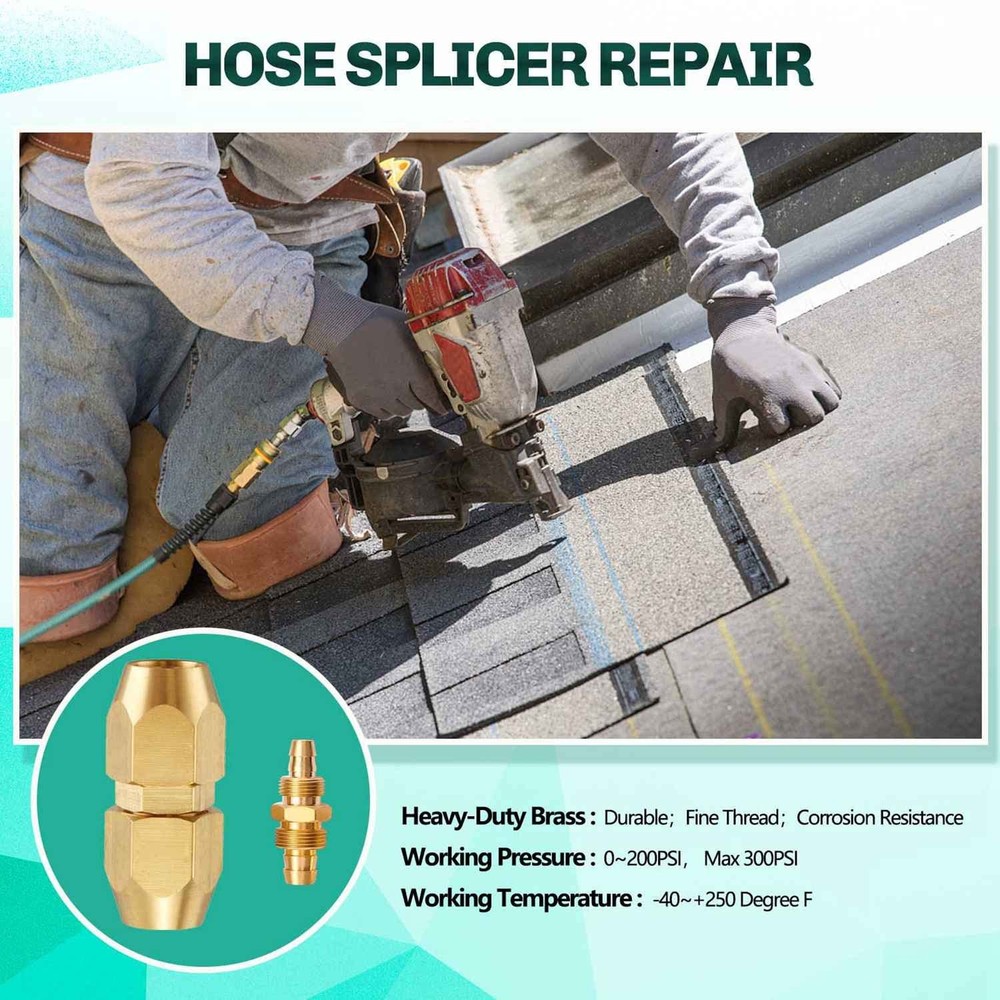 Pronese 2 Pack Soild Brass HPT Air Reusable Hose 3/8 Inch PU PVC, Product Details Applications: Suitable for plastic air hoses such as PU PVC, 3/8" barb can work for 3/8"ID x 1/2" OD or 9/16"OD (14x10mm) hose. If your air hose is rubber,please check the size befor buying! SIZE: Barb Size--3/8 inch x 3/8 inch,Maximum pressure rating of 300 psi,Temperature range of -40 to +250 degrees F. Introduction: With these fittings, hoses can be customized to any length, allowing your jobsite needs to be met.Durable design means our fittings can be used in any environment, from home garages to professional auto shops. Material: Solid Brass construction. Durable Brass for corrosion resistance, ductility at high temperatures, and low magnetic permeability. Package Include: 2Pack 3/8 inch x 3/8 inch Hose Splicer with 1pcs teflon tape. Specification:1. Easy to disassemble no flaring tool required.2. This fitting is made of brass for corrosion resistance, ductility at high temperatures, and low magnetic permeability.3. Fitting body and 2 nuts for splicing damaged hose.4.Very easliy to install.Package includes:2Pack 3/8 inch x 3/8 inch Hose Splicer with 1pcs teflon tape.★ Fits:Suitable for plastic air hoses such as PU PVC, 1/4" barb can work for 1/4"ID x 3/8" OD(10x6.4mm) hose or 5/16"ID x 15/32"OD(12x8mm) hose. If your air hose is rubber,please check the size befor buying!Suitable for plastic air hoses such as PU PVC, 3/8" barb can work for 3/8"ID x 1/2" OD or 9/16"OD (14x10mm) hose. If your air hose is rubber,please check the size befor buying!