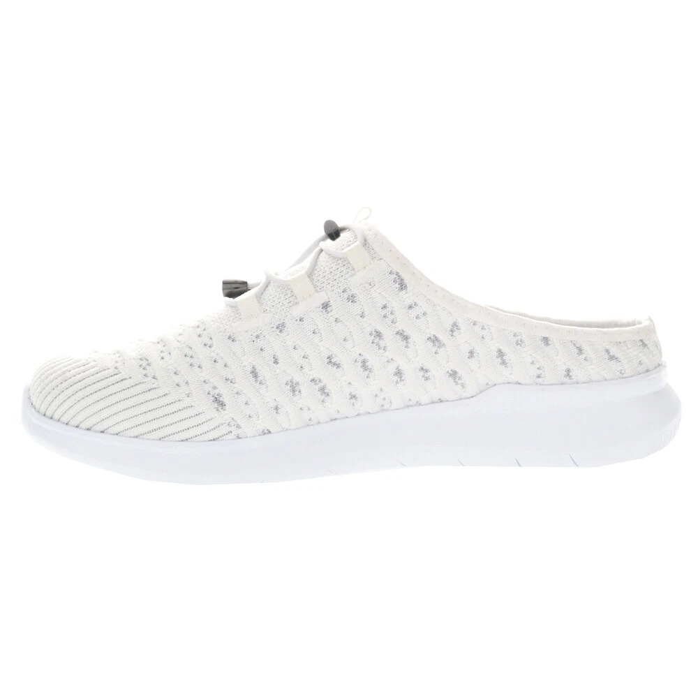 TravelBound Slip On Walking Shoes Product Details Knit mesh upper Elastic bungee lace with toggle Removable insole Arch supporting foam Thermally controlled rubber outsole Our top selling Travelbound Walking Shoe is now ready to slide into and take you anywhere you need to go in lightweight comfort. Breathable, mesh with an open heel is a great, convenient travel shoe. Additional Details Color: White Occasion: Casual Gender: Womens Age: Adult Brand: Propet