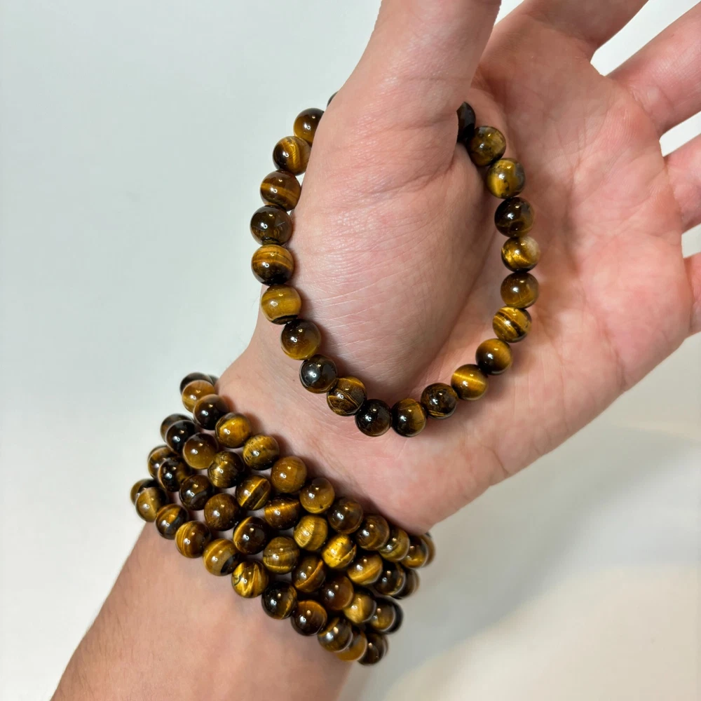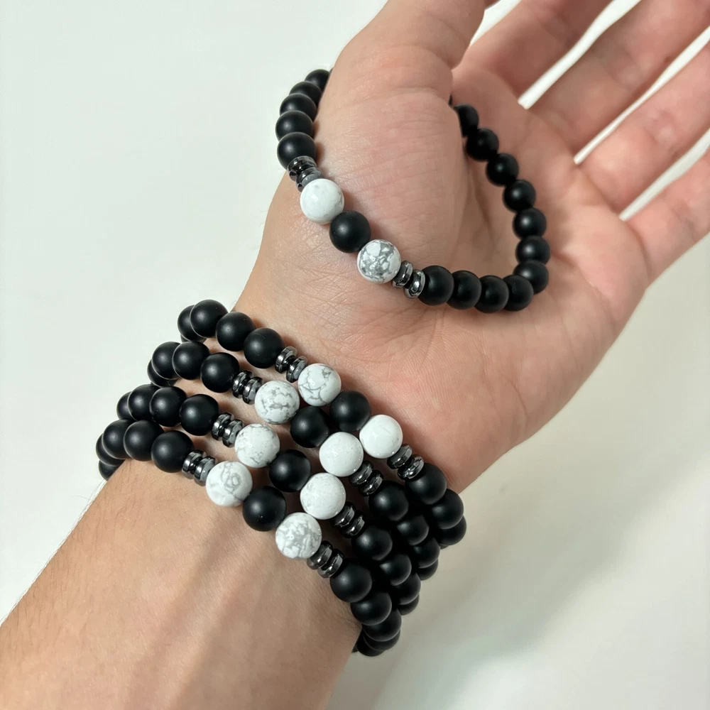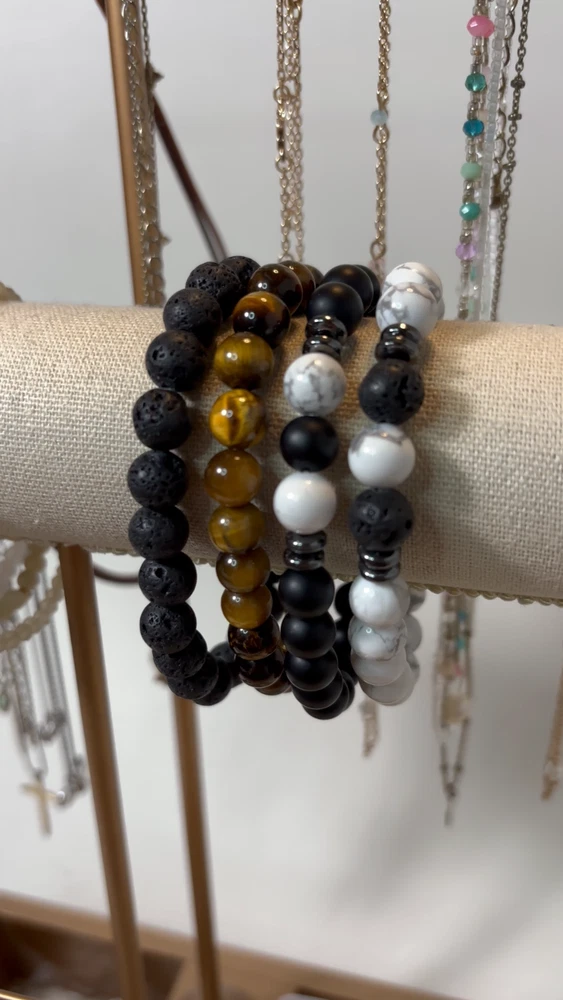 Protective Bracelet Set of 4 - Black Obsidian, White Howlite, Lava Rock, Tiger Eye Bracelets This listing is for 4 (FOUR) Protective Bracelets featuring natural obsidian, white howlite, lava rock, and tiger eye. FAST & FREE DOMESTIC SHIPPING Embrace strength, calm, and balance with this set of 8mm beaded protective bracelets, each designed to bring unique benefits for mind and spirit. Set Includes Black Obsidian Bracelet: Known as a stone of protection, Black Obsidian is believed to shield against negativity and provide emotional stability. White Howlite Bracelet: Thise calming stone is vlaued for reducing anxiety and encouraging a peaceful mind. Lava Rock Bracelet: Known for promoting courage and focus, Tiger Eye is also thought to protect against negative energy. Key Features: Bead Size: 8mm natural gemstone beads Bracelet Type: Stretch elastic bracelet for a comfortable fit Size: Approx, 7.5" around, stretches for a perfect fit Uses: Meditation, crystal healing, energy work, or daily wear Benefits: Stability, clarity, and grounding energy Perfect for anyone interested interest in a thoughtful gift for a loved ones or a meaningful addition to your personal collection. Please note: Each bracelet is made from natural stones, slight variations in color or texture add to the uniqueness of each piece. Disclaimer: Information regarding crystal properties is based on traditional sources and is not intended as a substitue for professional medical advice. For health concerns, please consult a licensed healthcare provider.