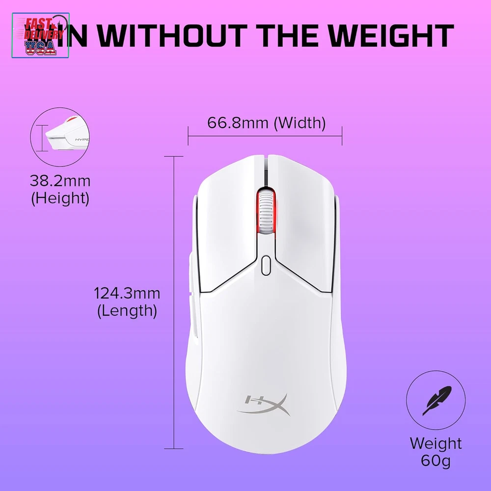 Store New Arrivals Add to Favorite View Feedback Contact Pulsefire Haste 2 – Wireless Gaming Mouse- Ultra Lightweight, 61G, 100 Hour Battery Life, Dual Wireless Connectivity, Precision Sensor - White Description Item model number 6N0A9AA Hardware Platform PC Style Pulsefire Haste 2 Operating System Not Obtainable (NA) Item Dimensions LxWxH 4.9 x 2.6 x 1.5 inches Power Source Battery Powered Color White Series Pulsefire Haste 2 - Wireless Gaming Mouse Product Dimensions 4.9 x 2.6 x 1.5 inches Color White Batteries 1 Lithium Polymer batteries required. (included) Item Weight 2.15 ounces Connectivity Technology 2.4GHz, Bluetooth, USB Movement Detection Technology Laser Special Feature Wireless, Programmable Buttons, Lightweight Average Battery Life (in hours) 100 Hours Country of Origin China Size Wireless Up to 100 hours of battery life: The Pulsefire Haste 2 Wireless gets up to 100 hours of battery life on a full charge, so you’ll spend more time racking up wins, and less time charging on the sidelines. Easier mouse movement for easier wins: Game at the speed of ultra-light with the Pulsefire Haste 2. Even with a solid upper shell, it weighs just 61g*, designed to help you move quicker, game better, and feel less fatigue. Dual wireless connectivity modes: Use the dongle to connect via 2.4GHz wireless or use Bluetooth Mode to connect to compatible devices. Incredibly precise HyperX 26K Sensor: Say hello to our HyperX 26K Sensor. It’s capable of up to 26,000 DPI natively and can track at speeds up to 650 IPS. With that level of precision, making clutch plays has never been easier. Durable, satisfying HyperX Switches: Rated for up to 100 million clicks, HyperX mouse switches provide solid tactile and audible feedback on every satisfying click. Virgin PTFE skates and custom HyperX Grips: Have ultimate confidence in your control with the smooth effortless glide of 100% virgin-grade PTFE skates, and 4 pieces of custom, residue-free HyperX grips to help provide a secure hold. Easily swap to wired mode: If you need to charge while you play, or just want the fallback option of having a physical connection to your mouse, the included USB-C to USB-A cable has got you covered. Customizable with HyperX NGENUITY Software: Personalize your lighting, set up macros and binds for the Pulsefire Haste 2 Wireless’s 6 programmable buttons, and customize DPI settings with easy-to-use HyperX NGENUITY Software. The HyperX Pulsefire Haste 2 Wireless is built for gamers who can’t afford to waste a millisecond and want the freedom of wireless connectivity. This sequel had a solid upper shell and keeps the 61g3 weight and 100-hour2 battery life of the original Pulsefire Haste, but builds upon it with several refinements. Pulsefire Haste 2 Wireless has dual mode wireless connectivity, allowing you to switch between 2.4GHz wireless and Bluetooth connections, and a charging cable so you can charge while using the mouse in wired mode. We’ve also built out a full suite of high-performance HyperX custom components, highlighted by the precision HyperX 26K Sensor with a native DPI of up to 26,000 and a tracking speed of up to 650 IPS. Our custom HyperX Switches provide tactile, audible feedback on each satisfying click, and are rated for a lifespan of up to 100 million clicks. You’ll also enjoy superior physical control of your mouse with virgin PTFE skates, and the included grip tape. Get the most out of every mouse movement with HyperX NGENUITY Software and create macros for the 6 programmable buttons, customize your DPI settings, and personalize the RGB lighting. ABOUT US We offer the best prices around on high quality products. Our E-store includes media such as books, movies, music and games while offering electronics, toys, sporting apparel, clothing, tools, general home, garden items and more. SHIPPING We are always working hard to ensure your package arrives as soon as possible. Please understand that some factors like weather, high postal traffic, and the performance of shipping companies are outside of our control. We offer free shipping to the lower 48 states and ship within 2 business days of payment, usually sooner. We do not accept P.O. Boxes. Please provide a physical address. For shipping outside of the continental USA, we only use eBay's Global Shipping Program.The item is shipped to KY and then sent to the rest of the world. International customers are responsible for all duties and taxes. Continue to check out in order to calculate costs for shipping the item to your country. Messages regarding eBay's Global Shipping Program MUST be directed at eBay EXCLUSIVELY. RETURNS We offer a 30-Day Return Policy on items which you are not completely satisfied with. You have the option for a full-refund or an exchange of the item. No returns are available on items shipped outside of the USA. PAYMENT We accept PayPal. CONTACT US This page content is yet to come Please ad us to your favorite seller and visit again later Thank You CUSTOMER SATISFACTION We try our very best to make sure every customer is completely satisfied. If there's a problem, message us! We're happy to help. WE ACCEPT Copyright © 2021 AutoDS. | All Rights Reserved
