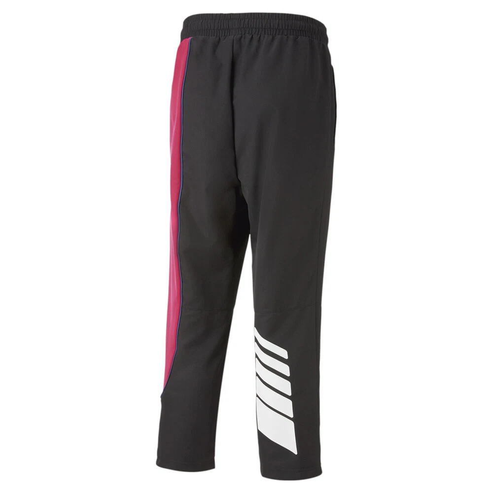 AMG Woven Pants Product Details Regular fit Elastic waist Bold colourblock design Mercedes-AMG Petronas Motorsport logo on the leg 100% Polyester Experience the feeling of being on the AMG x PUMA Motorsports team in these woven pants. The elasticised waist and tapered legs provide a comfortable, relaxed, breathable, and moisture-resistant fit. Additional Details Color: Black Occasion: Casual Gender: Mens Age: Adult Brand: Puma