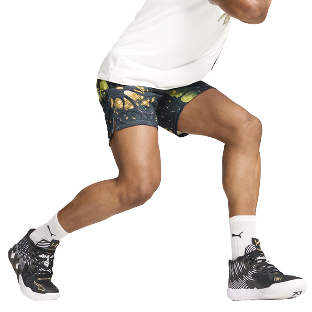 Melo 50th Basketball Shorts Product Details Relaxed fit 245 gsm Above knee length Side zip pockets PUMA branding details Step onto the court ready for action in recycled Melo shorts. Zip pockets stash essentials, while an unrestrictive fit allows free movement. The iconic Melo logo proudly displays your allegiance to basketball greatness. Additional Details Color: Black Occasion: Casual Gender: Mens Age: Adult Brand: Puma