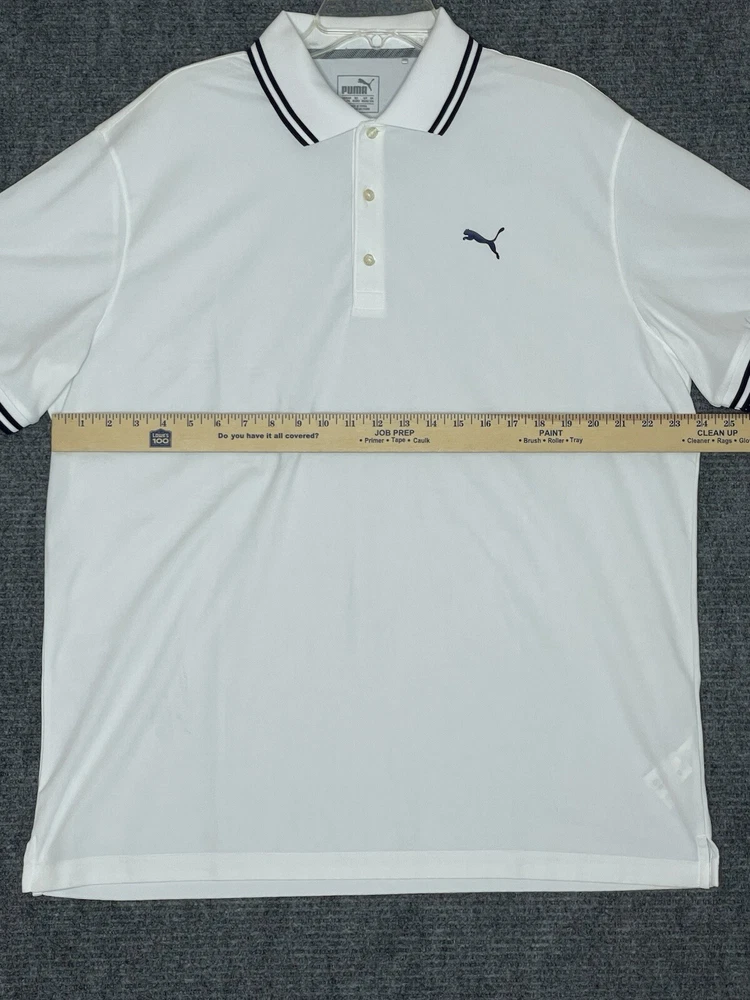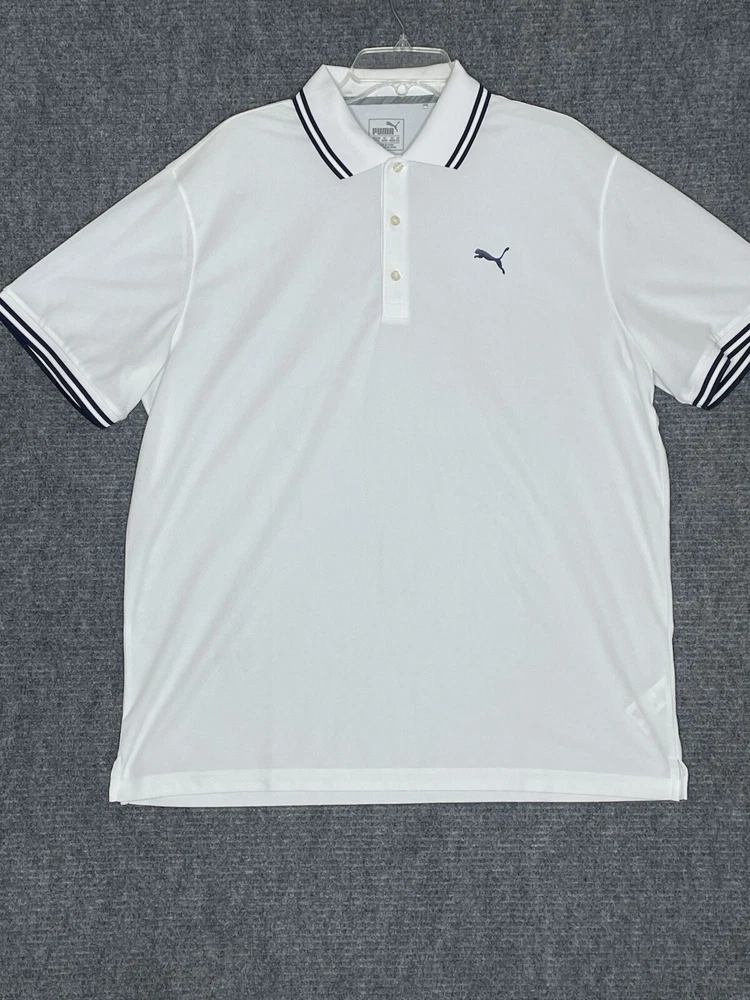 Puma Shirt Mens Polo Large White Short Sleeve Golf Tennis Walking Dry Cell