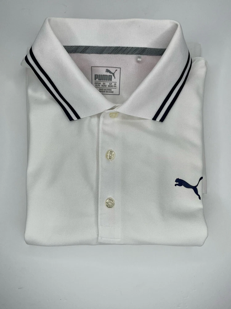 Puma Shirt Mens Polo Large White Short Sleeve Golf Tennis Walking Casual