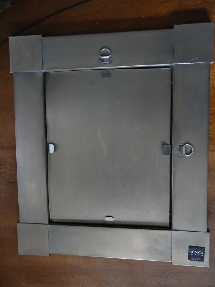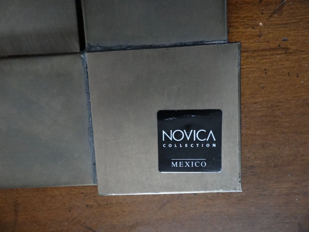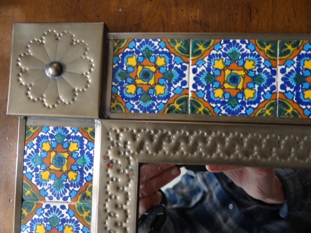 Novica Collection Talavera tile and punched tin mirror. Mirror is removable and can be used as a picture frame. Can be hung vertical or horizontal. Excellent pre-owned condition. Dimensions Mirror 6 1/4 x 8 1/2 Overall 13 x 15