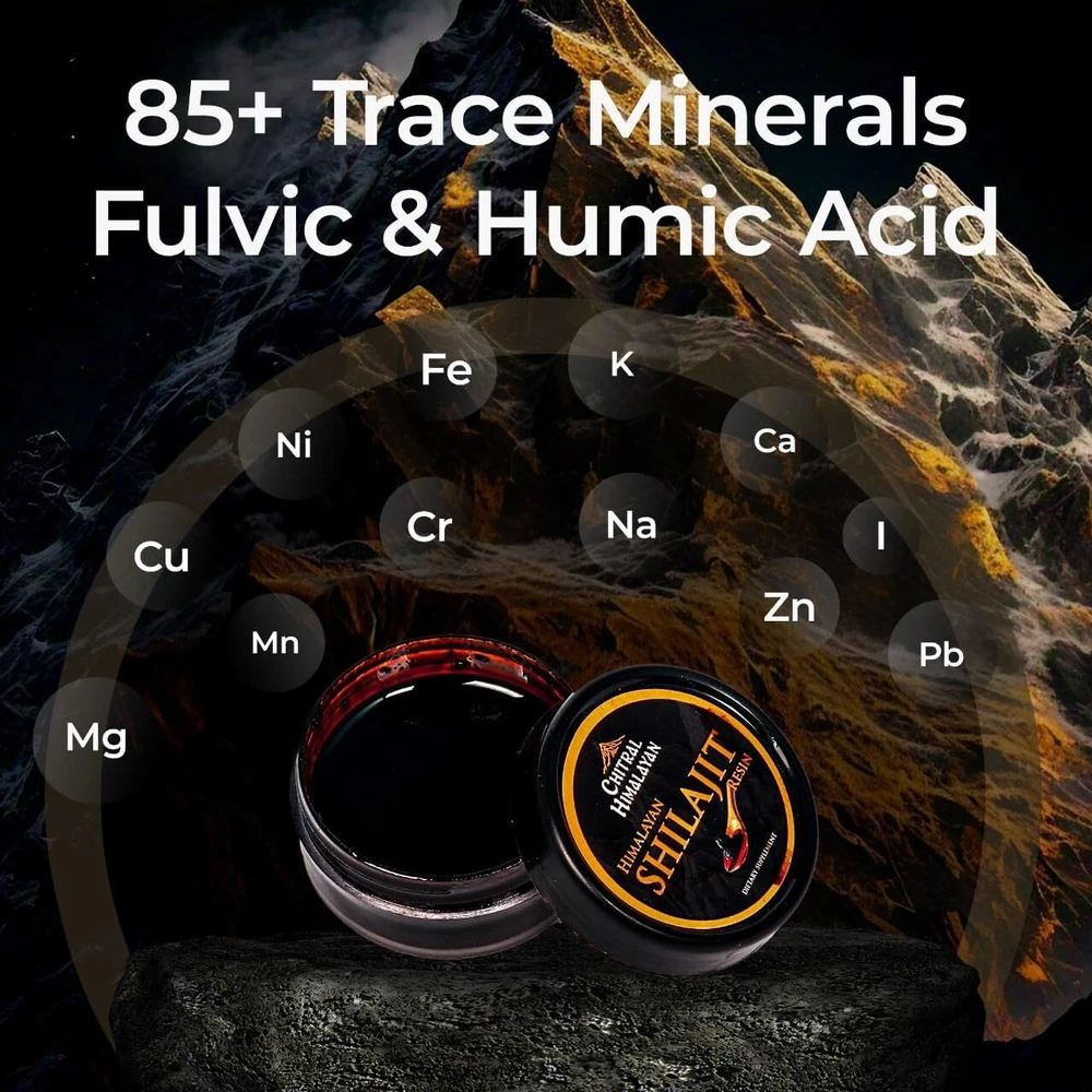 - Himalayan Shilajit Resin: Immerse yourself in the purity of freshly harvested Pure Himalayan Shilajit resin from the high altitudes of the Himalayan Gilgit Baltistan Mountains, exceeding 18,000 feet. Embrace the ancient Ayurvedic tradition with our Gold-grade natural Shilajit resin and Ashwagandha blend, rich in essential minerals, amino acids, Fulvic acid, and vitamins to promote balance, relief, and overall well-being. This pure Black Shilajit is ideal for those seeking the benefits of vital herbs Shilajit.