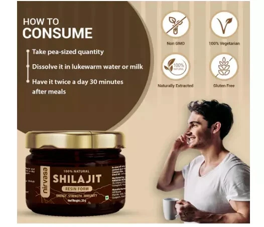 Department: Men, Unisex gtin13: Does Not Apply Formulation: Resin Body Area: Body Scent: Herbal, Mineral Main Purpose: Anti-Aging, Bodybuilding, Dietary Supplement, Energy & Endurance, Immune Support, Men's Health, Mental Health, Metabolism,, Mood Support, Muscle & Nerve Function, Muscle Growth,, Reproductive System Health, Sexual Health, Sport & Fitness MPN: Does Not Apply Dosage: pea sized Ingredients: Shilajit Expiration Date: Long Expiry Type of Diet: Ayurvedic, Natural, Organic When to Take: After Meal Active Ingredients: Fulvic Acid, Shilajit Type: Resins Country/Region of Manufacture: India Administration: Oral UPC: Does Not Apply Features: Natural, organic, 3rd - party tested Brand: Nirvasa