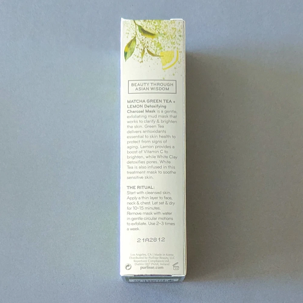Item: Purlisse Matcha Green Tea + Lemon Detoxifying Charcoal Mask Size: Full Size 1.7floz/50ml Formula: Detoxifying white clay mask works to purify and exfoliate. Infused with green tea, lemon, white clay, white tea, and ginger root. Lot: 21A2812 or better Condition: Brand new and authentic Packaging: Boxed Made in Korea