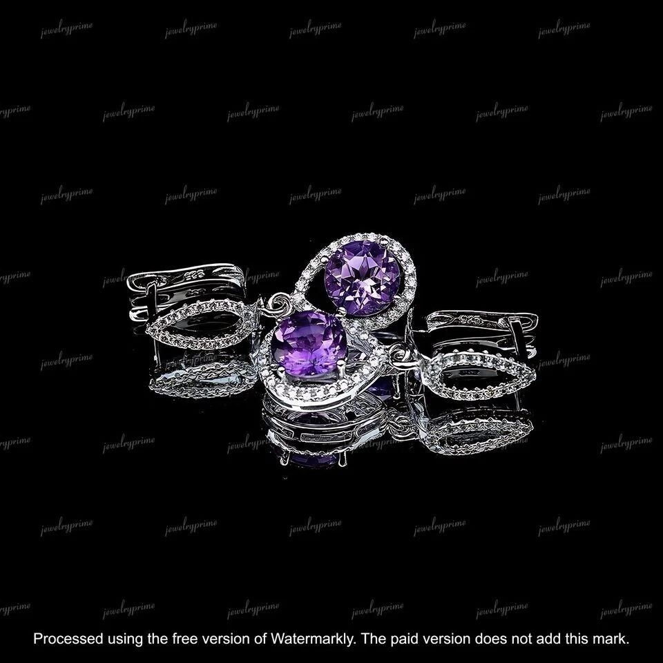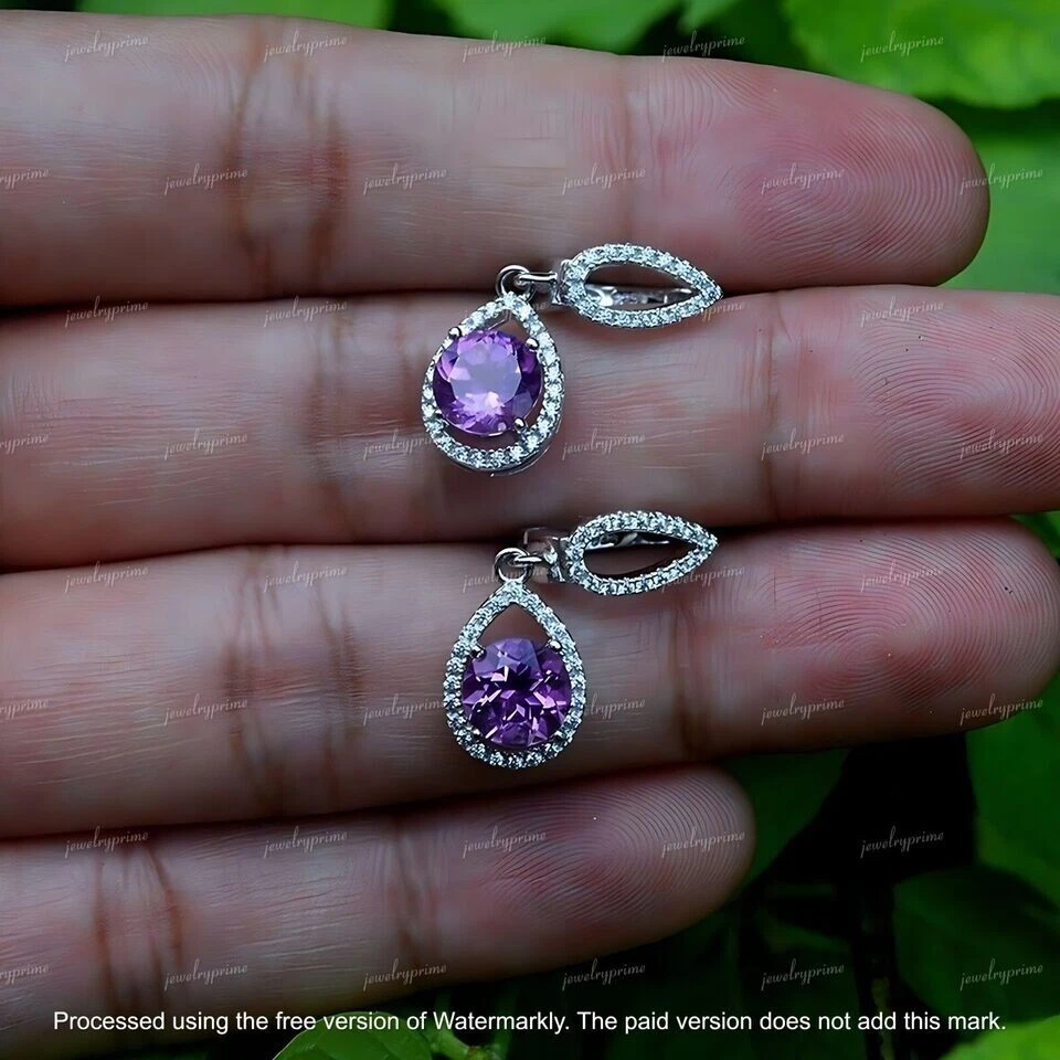 Signed: No Base Metal: Sterling Silver Colored Diamond Intensity: Fancy Handmade: Yes Cut Grade: Excellent Brand: shinydiamonds Total Carat Weight: 2 carat approx Main Stone Color: Purple Vintage: No Type: Earrings Seller Warranty: Yes Main Stone Creation: Lab-Created Theme: Beauty Personalize: No Color: White Gemstone Clarity Grade: Eye Clean Wholesale: Yes Diamond Clarity Grade: Very, Very Slightly Included (VVS1) Features: Engraved, Nickel-Free Antique: No Ear Area: Lobe Style: Dangle/Drop Era: Undated Occasion: Anniversary, Birthday, Christening, Christmas Metal Purity: 925 Main Stone Treatment: Not Enhanced Main Stone: Amethyst Metal: Sterling Silver Material: gemstone Main Stone Shape: Round Secondary Stone: Diamond
