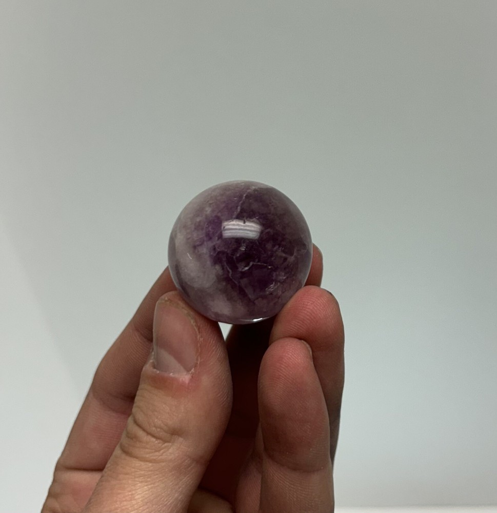 Purple Fluorite Sphere Polished Chinese Clear x Purple Fluorite appx 1" diameter