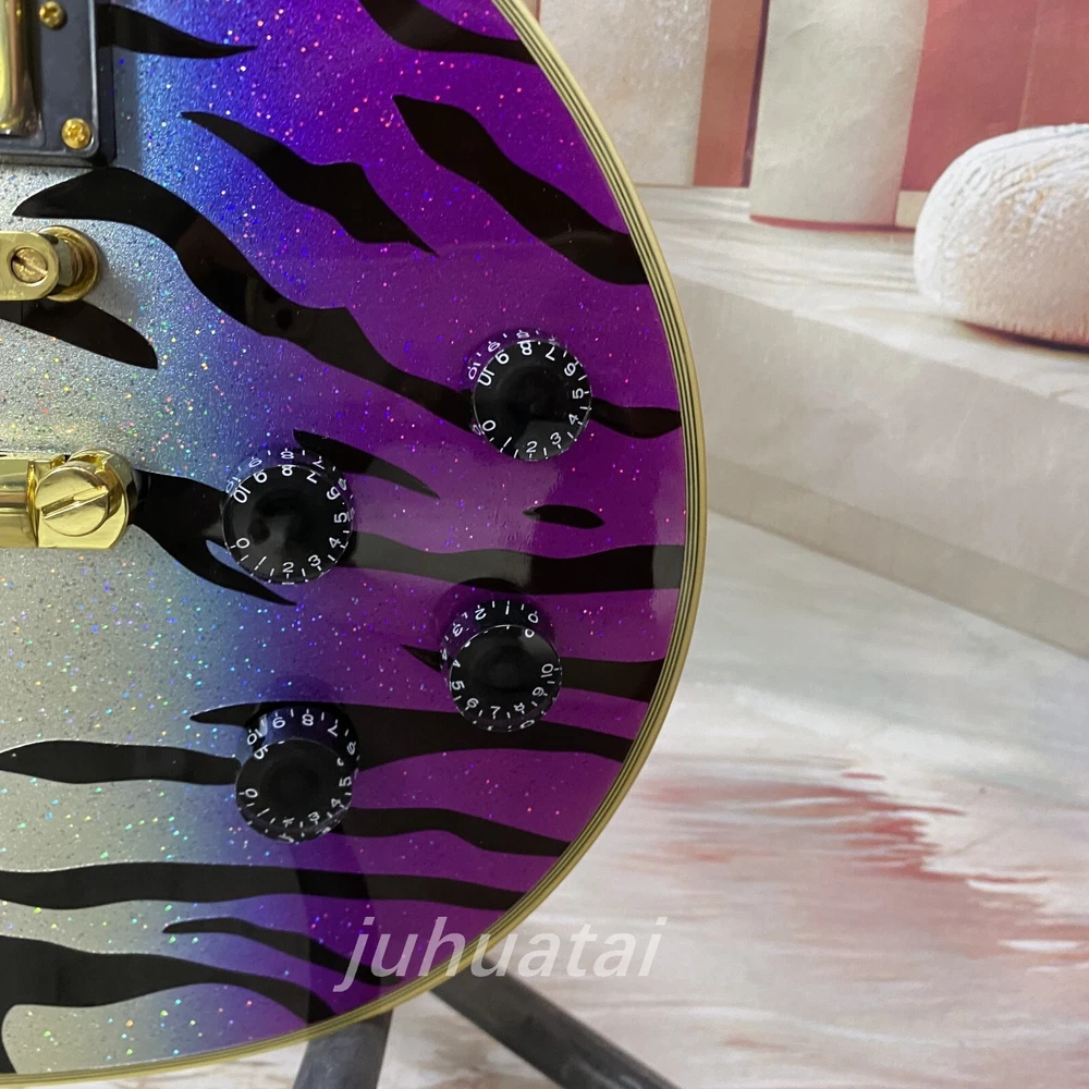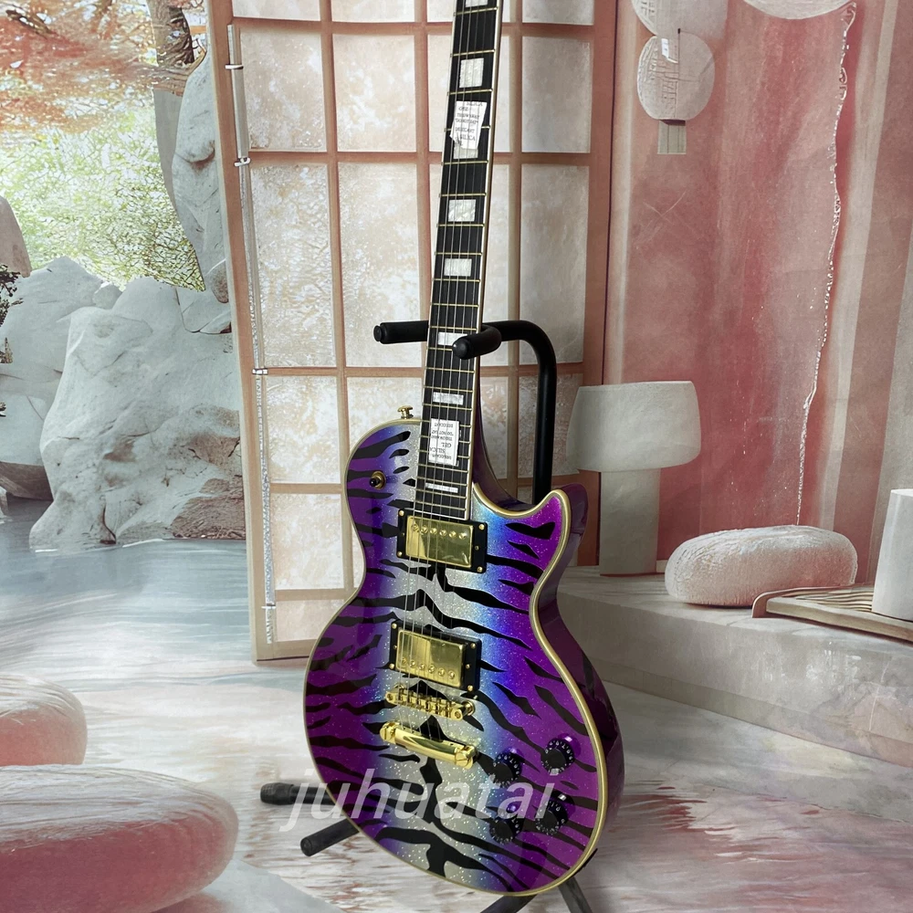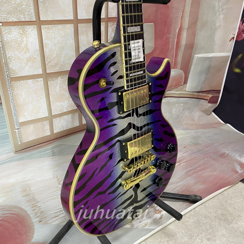 Purple Tiger pattern LP Electric Guitar gold hardware 6 string High quality