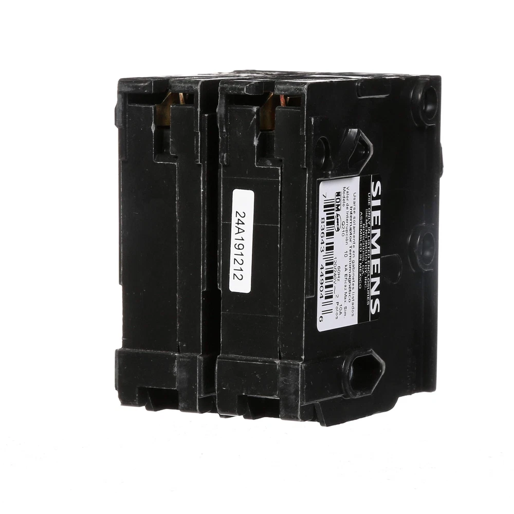 offers a wide array of thermal-magnetic circuit breakers that are the key element for overload and short-circuit protection of your home's electrical system. To provide additional protection offers circuit breakers to protect against severe electrical shock or electrocution, mitigate the risk of electrical fires and protect against damaging surges and Voltage spikes. Circuit breakers are intended for switching and protection of your home's wiring from high temperatures caused by excess current higher than the rating of the wire. While thermal-magnetic circuit breakers are the key element for overload and short-circuit protection of your electrical system, there are potentially dangerous conditions that do not involve over current. To ensure the on a panel is not voided, the use of breakers is required. strongly recommends against the use of "used" breakers. The installation of used breakers in a panel will void the on the panel. does not sell used breakers and has not approved any 3rd party sellers to do so. Double pole, 10 Amp, 240V type QP Circuit Breaker 10,000 AIC interrupting rating type QP circuit breakers provide easy plug-in connections in enclosures and the time saving insta-wire feature with PL and ES series load centers Use for overload and short-circuit protection of your electrical system