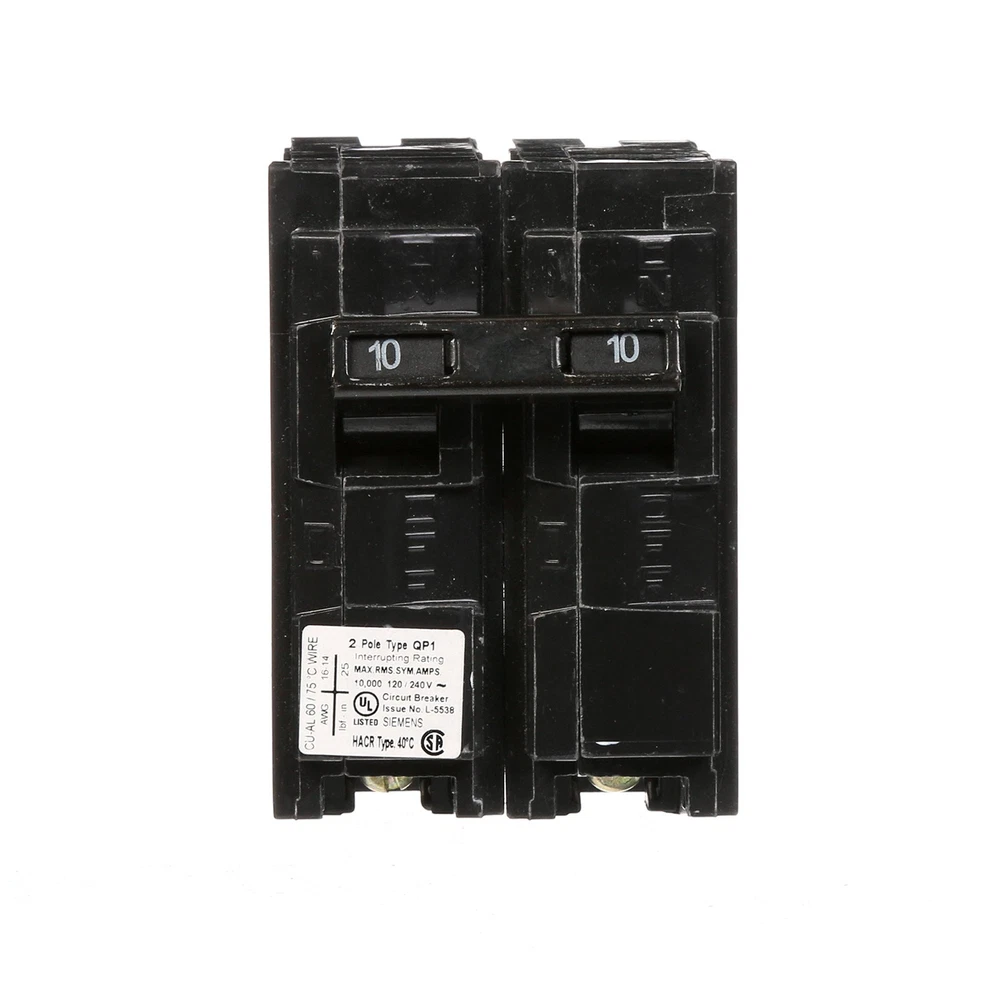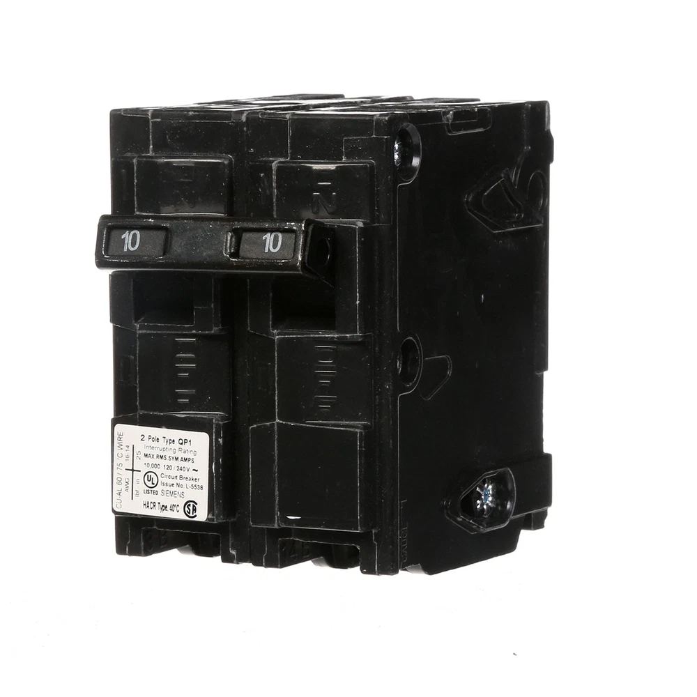 offers a wide array of thermal-magnetic circuit breakers that are the key element for overload and short-circuit protection of your home's electrical system. To provide additional protection offers circuit breakers to protect against severe electrical shock or electrocution, mitigate the risk of electrical fires and protect against damaging surges and Voltage spikes. Circuit breakers are intended for switching and protection of your home's wiring from high temperatures caused by excess current higher than the rating of the wire. While thermal-magnetic circuit breakers are the key element for overload and short-circuit protection of your electrical system, there are potentially dangerous conditions that do not involve over current. To ensure the on a panel is not voided, the use of breakers is required. strongly recommends against the use of "used" breakers. The installation of used breakers in a panel will void the on the panel. does not sell used breakers and has not approved any 3rd party sellers to do so. Double pole, 10 Amp, 240V type QP Circuit Breaker 10,000 AIC interrupting rating type QP circuit breakers provide easy plug-in connections in enclosures and the time saving insta-wire feature with PL and ES series load centers Use for overload and short-circuit protection of your electrical system
