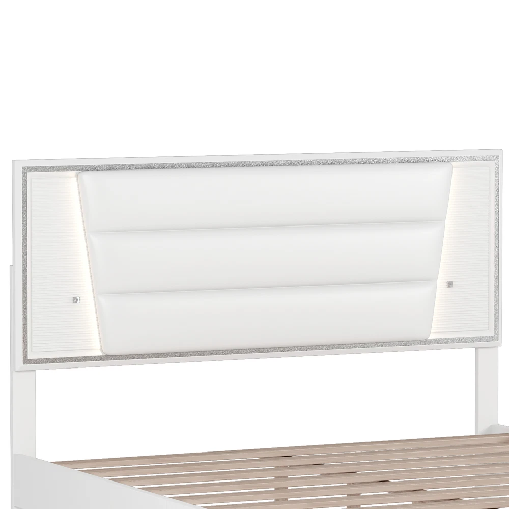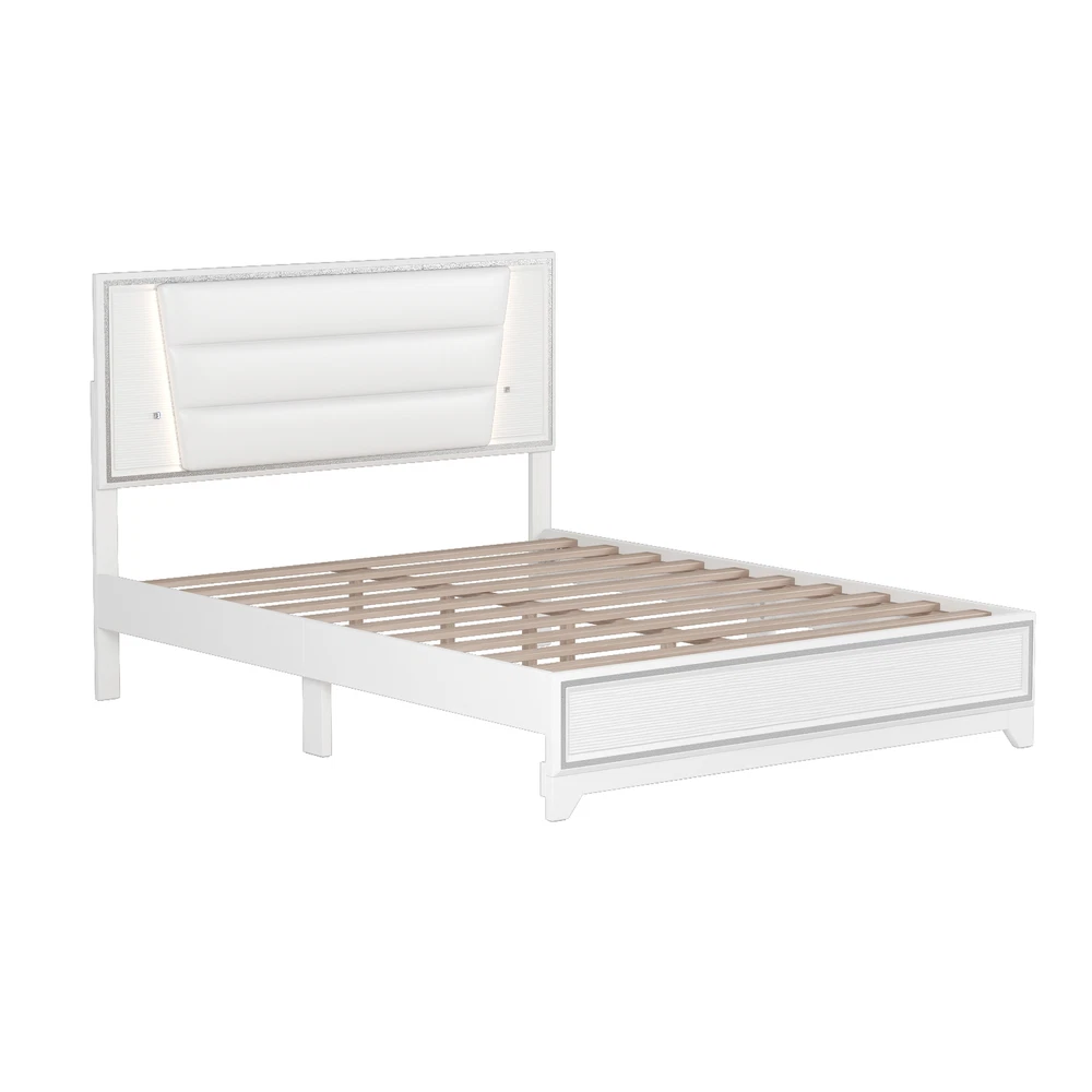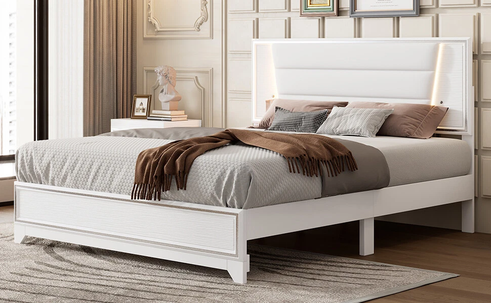 Brand Unbranded Item Length 66.18 Item Width 24.61 Item Height 4.57 Color White Frame Material PU Type BED FRAME Compatible Mattress Size As described Diamond-ring-1 Simple life Queen Size PU Upholstered Bed, Headboard with LED Light Strips and Sparkling Shiny Decoration, No Box Spring Required, White [Simple and Elegant Design] This platform bed is wrapped in PU as a whole, with a headboard with sparkling shiny decoration, making the bed overall calm and introverted, with a classic and timeless design style that is suitable for a wide range of home styles. [LED Bed Frame] There are buttons on both sides of the headboard to control the LED lights. The LED lights have three levels of brightness. You can create a romantic and warm atmosphere in the bedroom by adjusting the LED lights. [Solid & Sturdy] The bed frame is made of solid MDF and Plywood, providing a dense and strong support. The construction ensures both a lifetime of use, and a sturdy bed frame with a head which will not wobble. [Easy Assembly] The bed comes with detailed assembly instructions and necessary assembly tools in the package, so you can easily assemble the whole bed. [Dimensions] Overall Dimension: 83.6 x 62.2 x 47.2inches (L x W x H) . Suitable for mattress Queen size(Mattress is not included). Queen Size PU Upholstered Bed, Headboard with LED Light Strips and Sparkling Shiny Decoration This upholstered bed with LED lights and sparkling shiny decoration is easy to make your home unique. The LED lights have three levels of brightness, bringing you a romantic night and a comfortable sleep. Attached with Led Light, this upholstered bed frame provide stylish modern style in a glamorous way. Upholstered in skin-friendly, breathable, and wear-resistant fabric which provides comfortable support for reading in bed. Classic modern design, which is suitable for contemporary, industrial decor homes. Features: Product Type Bed Color White Material MDF+Plywood+PU Size Queen Detail Product Dimension Please refer to the Size image Weight Capacity 500LBS Number of Slats 10 Recommended Mattress Thickness 10" Assembly Required Yes Country of Origin Malaysia Item Specifics Brand Unbranded Item Length 66.18 Item Width 24.61 Item Height 4.57 Color White Frame Material PU Type BED FRAME Compatible Mattress Size As described Payment Returns Diamond-ring-1 Simple life DESCRIPTION PAYMENT SHIPPING RETURN POLICY CONTACT US Shop Category Store Home Other Hot Item Delivery New List Item Help & Info Payment Policy Shipping Policy Return Policy FAQ About Us Queen Size PU Upholstered Bed, Headboard with LED Light Strips and Sparkling Shiny Decoration, No Box Spring Required, White [Simple and Elegant Design] This platform bed is wrapped in PU as a whole, with a headboard with sparkling shiny decoration, making the bed overall calm and introverted, with a classic and timeless design style that is suitable for a wide range of home styles. [LED Bed Frame] There are buttons on both sides of the headboard to control the LED lights. The LED lights have three levels of brightness. You can create a romantic and warm atmosphere in the bedroom by adjusting the LED lights. [Solid & Sturdy] The bed frame is made of solid MDF and Plywood, providing a dense and strong support. The construction ensures both a lifetime of use, and a sturdy bed frame with a head which will not wobble. [Easy Assembly] The bed comes with detailed assembly instructions and necessary assembly tools in the package, so you can easily assemble the whole bed. [Dimensions] Overall Dimension: 83.6 x 62.2 x 47.2inches (L x W x H) . Suitable for mattress Queen size(Mattress is not included). Queen Size PU Upholstered Bed, Headboard with LED Light Strips and Sparkling Shiny Decoration This upholstered bed with LED lights and sparkling shiny decoration is easy to make your home unique. The LED lights have three levels of brightness, bringing you a romantic night and a comfortable sleep. Attached with Led Light, this upholstered bed frame provide stylish modern style in a glamorous way. Upholstered in skin-friendly, breathable, and wear-resistant fabric which provides comfortable support for reading in bed. Classic modern design, which is suitable for contemporary, industrial decor homes. Features: Product Type Bed Color White Material MDF+Plywood+PU Size Queen Detail Product Dimension Please refer to the Size image Weight Capacity 500LBS Number of Slats 10 Recommended Mattress Thickness 10" Assembly Required Yes Country of Origin Malaysia Item Specifics Brand : Unbranded Item Length : 66.18 Item Width : 24.61 Item Height : 4.57 Color : White Frame Material : PU Type : BED FRAME Compatible Mattress Size : As described Payment Returns All rights reserved.