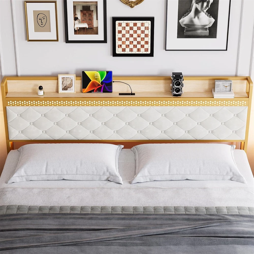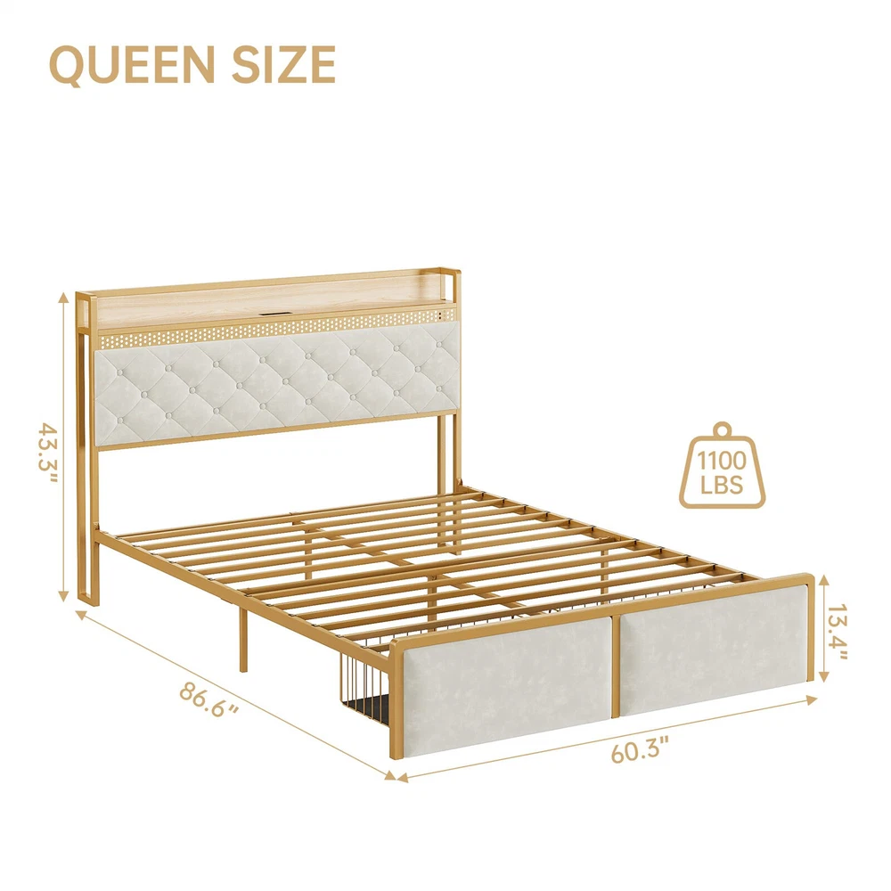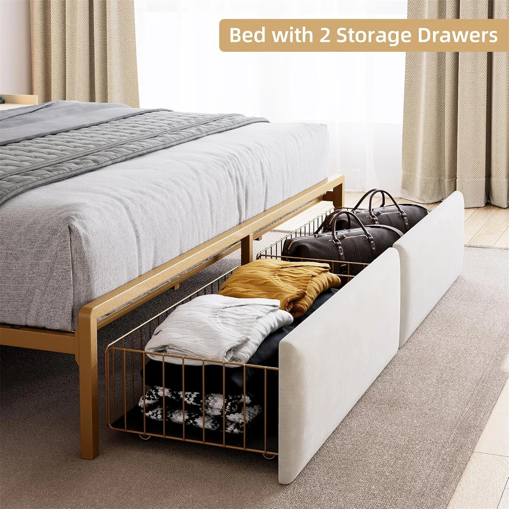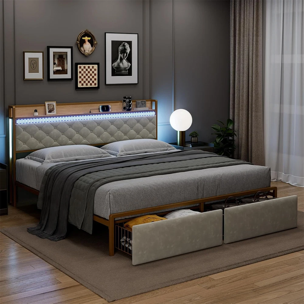 About this item Smart LED Lighting: The GarveeHome metal platform bed features adjustable LED lights, allowing you to easily set your desired ambiance with a remote, enhancing the warmth and unique charm of your bedroom. Functional Double Drawer Design: The bed frame includes two oversized drawers with black dust pads for convenient clothing storage and organization, maximizing bedroom space for a tidy look. Convenient Charging Headboard: The upholstered headboard comes with a built-in charging station, featuring two standard outlets and two USB ports, making it easy to charge various electronic devices while providing excellent back support. Sturdy Noise-Free Support: The all-metal support system enhances durability, ensuring you enjoy a quiet and comfortable sleep experience, effectively eliminating noise disturbances. Box Spring Not Required, Easy Assembly: All parts and tools are included, so no extra preparation is needed. Follow the easy instructions to assemble in under an hour, avoiding complicated steps. WHAT YOU GET KING/QUEEN/FULL OPTIONAL Product Description The GAOMON upholstered bed frame, a cutting-edge addition to any modern bedroom that elegantly combines functionality with personalized style. Featuring a sleek grey design, this bed frame includes unique RGB LED lights that can be customized to create the perfect atmosphere, all controlled by a convenient remote. The GAOMON bed frame with RGB LED Lights and Storage represents a harmonious blend of contemporary design, practicality, and technology, making it an ideal choice for anyone looking to elevate their bedroom's functionality and style. Payment Delivery details Terms of sales About us Contact us Payment We accept payment either via PayPal or any of the following credit cards; Visa, MasterCard, Discover, and American Express. Wishing you a happy life! Delivery details We will provide you with the tracking number on the same day or the next day, and transport your package through UPS, DHL, FedEx and other courier methods. If you have any questions, please feel free to contact me and I will do my best to help you solve the problem. Wishing you a happy life! Terms of sales We offer a one month free return and exchange service, and you don't have to bear any losses. We will provide multiple solutions for you to choose from. If you have any questions, please feel free to contact me and I will do my best to help you solve them. We offer a two-year warranty period. If you have any quality issues with the product you purchased within two years, please feel free to contact me. I will provide you with a free replacement service. If you have any questions, please feel free to contact me. I will do my best to help you solve the problem. Wishing you a happy life! About us We are committed to becoming the best eBay seller, with high-quality suppliers, providing the most sincere service, including pre-sales and after-sales service, to give you a satisfactory shopping experience. If you have any questions, please feel free to contact me, and I will do my best to help you solve the problem. Wishing you a happy life! Contact us If you encounter any problems, please contact me by email at the first time, I will provide you with a solution as fast as possible so that I can give you a satisfactory shopping experience, wish you a happy life! Brand AutoSteelix Compatible Mattress Size KING/QUEEN/FULL/ OPTIONAL Frame Material Metal Type Bed Frame Features Squeak Resistant Finish Painted Product Dimensions 86.6"L x 60.3"W x 43.3"H Item Height 13.4"/43.3" Item Length 86.6" Room Bedroom Item Width 60.3" Number of Drawers 2 Manufacturer Warranty 5 Years KING SIZE 86.6"L x 76.3"W x 43.3"H QUEEN SIZE 86.6"L x 60.3"W x 43.3"H FULL SIZE 81.7"L x 54.3"W x 43.3"H
