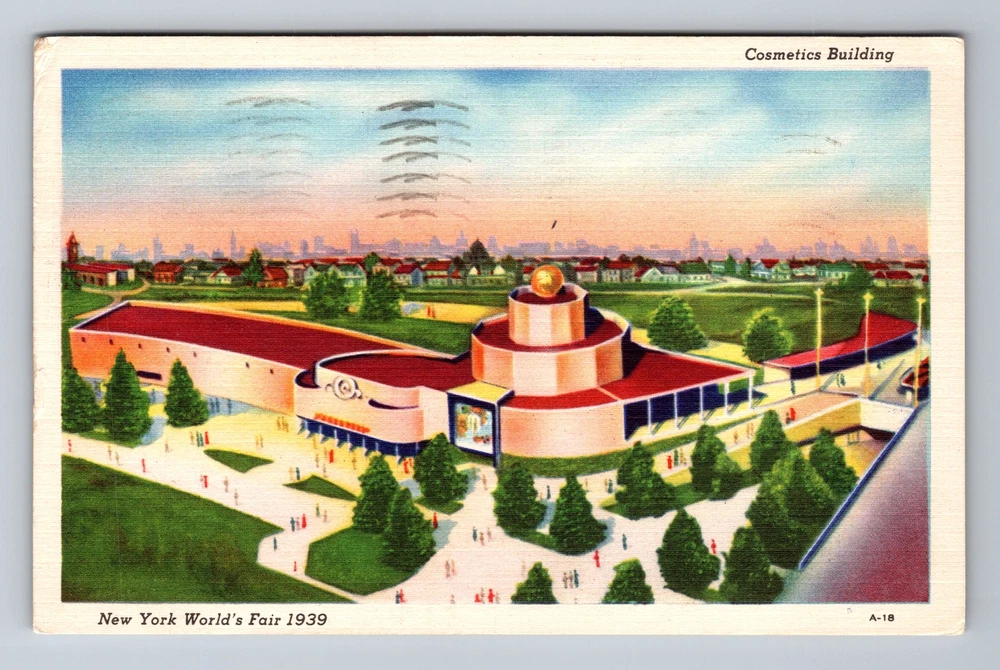 Queens NY-New York, Aerial Cosmetics Building, Vintage c1939 Postcard