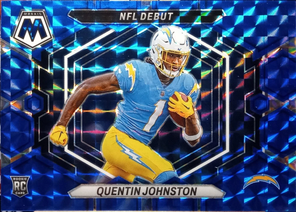 High End Hobby Card Auctions Starting @ $1.99 w/ combined shipping for multiple items purchased. So, the more cards you win, the less you pay per card. Featuring NFL options of 2022 Mosaic Sparkles, 2023 Prizm Football Checkerboard Prizms, 2023 Phoenix Football, & More. Rookies & Veterans. All cards Limited, Short Print, Super Short Print, or Have a Serial Number. So, check out my Seller's Other Items, and get into my store before you miss out on the cards you're looking for. Don't forget to hit the heart sign next to my seller name to follow my page, and get updates on all of my upcoming auctions. Currently have about 20,000 cards to get caught up on posting. So, I'm starting a free high end hobby card giveaway, since the last one went so well. Every 5th card sold, and paid for will come with a free high end hobby card that I match to the team, or sport you purchased. This now goes until December 31st. The giveaway went so well we gave over 50 cards SP, or #'d away to our loyal customers. All cards posted on my account are included in the giveaway. Stay tuned, and appreciate everyone who took part in my last giveaway. Thanks for your time, and rest assured all cards are shipped in water resistant bubble mailers, and w/ a Top Loader, Hard Case, and Dust Cover. No tape anywhere to damage your card during shipping, and a tracking number attached to every card so you know you are getting what you paid for. Elevate your collection with the 2023 Panini Mosaic Quentin Johnston RC Blue Mosaic /99 SP Color Match card. As a standout piece, this card features the talented Los Angeles Chargers wide receiver in his rookie year, cementing its value for fans and collectors alike. Its limited print run of just 99 copies makes it a rare find, while the Blue Mosaic parallel variety adds a distinctive touch to its design, ensuring it stands out in any display. Crafted with quality card stock and maintaining the standard card size, this item is a testament to the NFL's memorable moments and players. The card, numbered ND-16, is a true collector's edition, complete with the sought-after hologram and chase features. Proudly manufactured in the United States, this non-autographed collectible is an essential addition for enthusiasts of the sport, capturing the spirit of football in a tangible form.