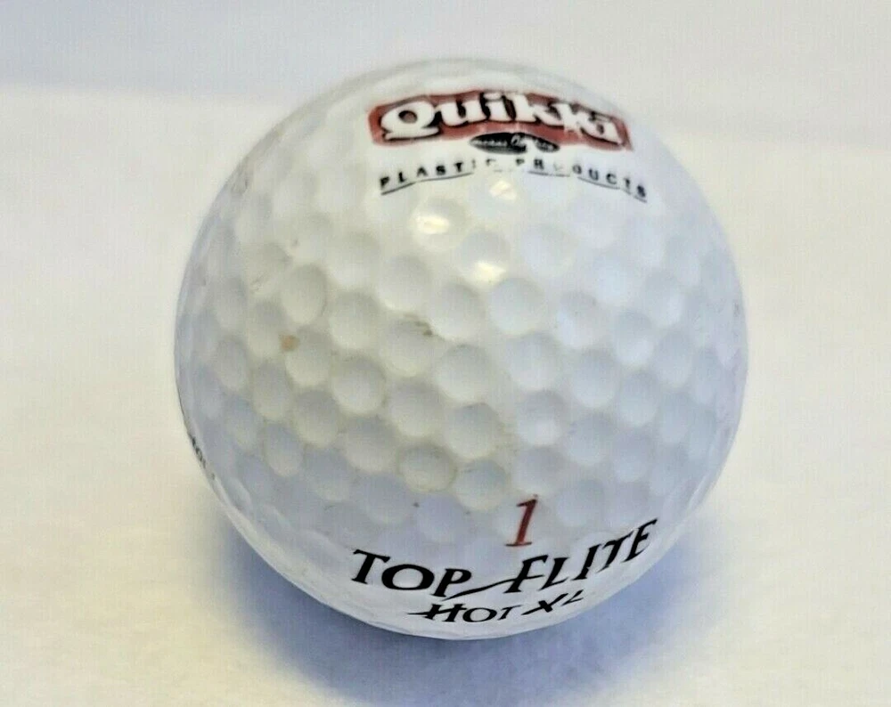 Quikki Plastic Products Logo Golf Ball (Top Flite Hot XL) AAA You Will Receive One Quikki Plastic Products Logo Golf Ball. GOOD (3A) RECYCLED GOLF BALLS Free of cuts, but may have slight scuffs, blemishes, minor discoloration and smudged print. Higher-grade x-outs and practice models may be included. Player pen markings or logos of all shapes and sizes can be present. ** NOTE ** In Good Pre-owned Condition See Photos For Quality And Condition Of Item =============================================================== Please zoom in and view photos to see the quality of the product you will receive. Item Pictured Is Item You Will Receive =============================================================== See my other listings for more great items . Discounts on multiple purchases. STOR-1 ========================================== Please see the description and photos for condition and product details. Before Bidding! ========================================= QUESTIONS AND CONCERNS PLEASE READ BEFORE BIDDING! If you have any questions or concerns regarding this auction please contact me before placing a bid/offer or purchasing I am here to help. I do my best to present accurate, detailed information and fairly describe every item(s) I sell, not liable for misidentification of items. P hotos have been provided to indicate the details and condition of these items. Will provide more photos if requested. ? ==================================================== TERMS AND FEEDBACK If you are satisfied with my transaction, please take a moment to leave me 5-Star Positive Feedback rating once you have received your items. I will happily leave 5-Star Positive Feedback for our customers upon a successfully completed transaction. If there are any issues please contact me before leaving a neutral or negative feedback or filing a claim so that I can do my best to resolve any issue that you have and provide the best solution for you. ========================================= ?PAYMENT Payment is due at time of purchase. Items will be shipped Next Business Day From a Smoke Free and Pet Free Home after the PayPal payment is received and verified. I only ship to the address provided with payment ========================================= RETURNS & EXCHANGES Please be sure to inspect your items immediately upon receipt, and contact me immediately if there is a problem with the order. ?Returns will only be accepted if item is not as described or damaged. ========================================= SHIPPING AND HANDLING Shipping is within the lower 48 US states with Tracking and Insurance included after payment has been received. ? ? Shipping outside the US is available thru the eBay Global Shipping program, with the buyer being responsible for paying the additional shipping costs and any taxes/duties/custom fees or other charges for shipping from the eBay shipping center to the final address outside the US. All items ship within 2 business day. ? ========================================= Thank You For Your Business! Happy bidding and have a blessed day. Track Page Views With Auctiva's FREE Counter