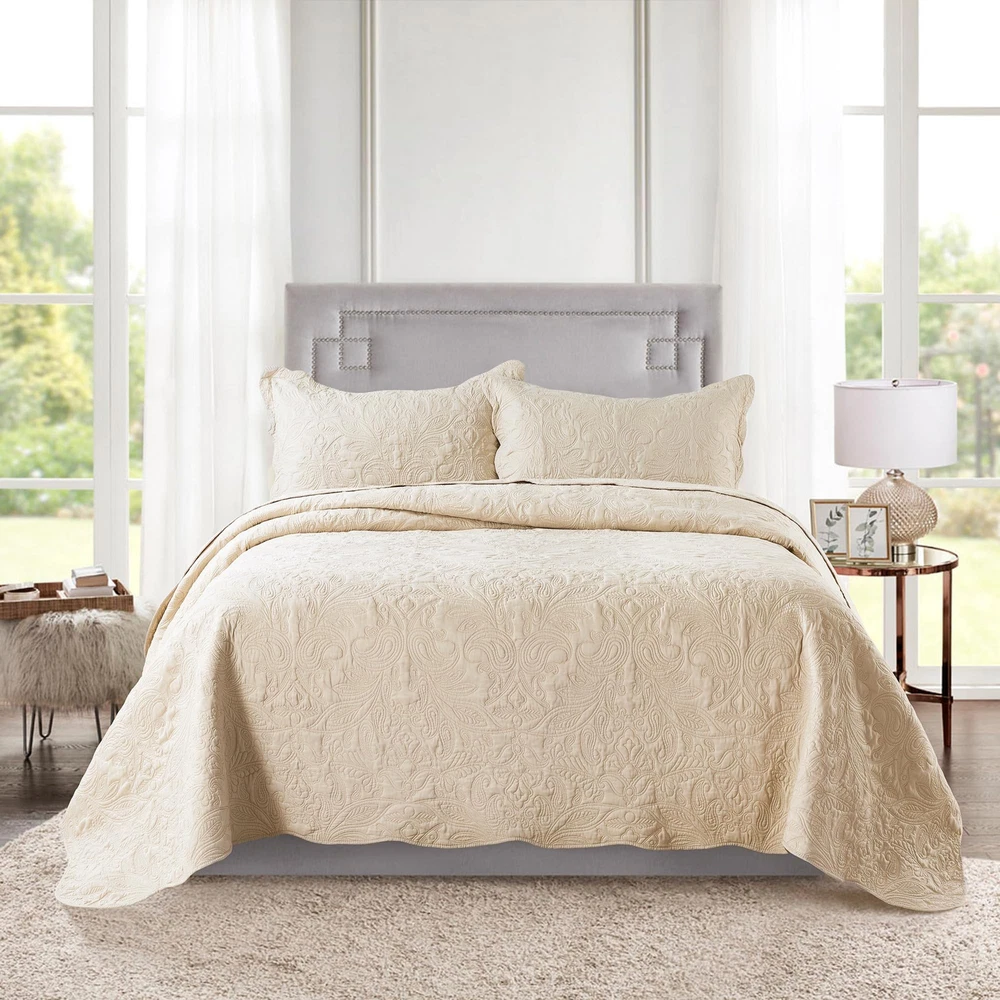 🌲🌲Aesthetic & Functional🌲🌲Rustic Quilt Sets have the following advantages,Classical Paisley Pattern Desigh,Embroidered bedspread sets sewed with neat stitches, Pair with delicate and lovely fan edge, enhance your bedroom neatly and attractively 🌲🌲Premium Material Quality🌲🌲Quilt Sets utilize 100% brushed microfiber as outer fabric,and Polyester/ Cotton Fabric as filler.Microfiber quilt will never bunch as time went - long lasting softness, fade & stain resistance better than cotton 🌲🌲Multipurpose & Lightweight🌲🌲Lightweight Quilt Set is good idea for a summer quilt, a nice underneath for spring & fall and winter,soft and romantic color & pattern,not only practical but also aesthetic 🌲🌲Care Instructions🌲🌲We Prewash Every Quilt to pursuing Softness.Microfiber Quilt is Machine washable, reduced your chores time.Wash separately in cold water, gentle cycle, tumble dry on low or dry naturally, do not bleach 🌲🌲Packaging & Dimensions🌲🌲King Quilt Bedding Set packaging include: 1 x King Quilt (106x96 inch) & 2 x Pillow Cases (20x36 inch)