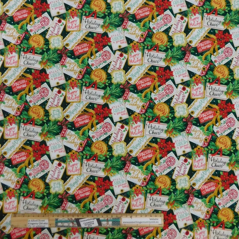 Quilting Patchwork Sewing Fabric Christmas Gift Tags 50x55cm FQ Quilting Patchwork Sewing Fabric Christmas Gift Tags 50x55cm FQ Name: CHRISTMAS GIFT TAGS – FEELING FROSTY Size: This is sold as a fat quarter or 50 x 55cm, if you want more please see the table below for bigger sizes We Cut all of our Fabric straight off The Roll , Purchase More Than One Fat Quarter And Your Fabric Will Be Sent in One Continuous Piece . This 100% Cotton fabric is suitable for all of your purposes. You could make anything from Quilts, dolls, curtains, clothes, cushions, Craft projects or just about anything our heart desires. This particular fabric is being sold as a Fat Quarter. What is that? A Fat Quarter or FQ, is a quilting term for a quarter of a meter and in Australia measures approx 50 x 55cm (20 x 22inches). See table below. But What if I need more than a Fat Quarter? Well that is no problem. As you can see from the table above, we sell this fabric by all sizes. Just find the size you are wanting from the list on the left hand side of the above table, and it will tell you the corresponding quantity to put into the quantity box. Eg for 2.5 meters or 250cm put in 10 into the quantity box, for half a meter put in 2 and for 1m or 100cm put in 4 and so on. The price is the current price x the quantity . Please remember that this price also includes postage within Australia. For our USA customers. 1 yard is just under 100cm. So if you are wanting 1 yard, please put in 4 into the quantity box. We are a registered quilting shop in Qld, Australia, and we Cut all of our Fabric straight off the Roll, Purchase More Than One Fat Quarter and your Fabric will be sent as a Continuous Piece. to start out in Fabrics, and haven’t looked back. We have been started selling them on Ebay and have been thrilled with the response. Ebay has kept our small business going and has kept our doors open in these tough economic times and drought, and has enabled us to expand into a Fully fledged Quilting Shop as well as the Gifts and Homewares Shop. So every purchase you make, you help a local economy, that supports local charities, local businesses and sells locally made items. We do have websites as well, but our Ebay business, keeps us going. We source products from Australia and all over the world. We have some exclusive items as well. We also love to see what you have been making with our fabrics, and other crafts. Please feel free to share your handmade items with us on Facebook. How to Order Work out how much you need, and enter that amount into the quantity box above. Shipping Combined Shipping - Click on our Buy it Now button or Add to Cart, and you will get FREE POSTAGE Australia Wide. We will combine all your items purchased on the same day, so after you've bought one, why not go ahead and browse around our other listings to see what else you like... you never know what you might find! International Postage - Shipping to overseas countries, goes by weight. So each fabric addition will cost more. For more details of costs to your country, click the See all details. Our Postage costs, do not include customs charges or import duties. It is up to you as the buyer to check out your own countries importing charges. Our customs forms state the item is a gift and can understate amounts by a little to help you out with import duties If however your item has been damaged, when received, please let me know asap. You will need to send proof of damage via photos. We will replace, fix or let you know what you will need to do for this. If your item has been lost in transit, even though we take great care, this has sometimes occurred, please make sure you allow enough time for delivery. Australia Post guidelines state to wait 10-14 working days from the next day after postage had been done . Excluding public holidays for Australian customers, 4 weeks for international customers. Normally delivery will occur within 7 days, However, if your package has not shown up after 14 working days, please contact me via Ebay Message for items within Australia Please note that the majority of fabric orders will be sent as an envelope, so will take longer to receive. All items we sell are Stored in a Clean, Smoke Free and Pet Free Retail Shop, so You can be Rest Assured they will be In Top Condition when they arrive at your place. Express Postage - We post most of our items within a day of receiving payment confirmation. This may delay if you pay via Bank Deposit as we wait for confirmation, which can take an extra day or 2. Packaging Materials - We try and save our Customers, like you, money. This means we send in envelopes, which get charged at letter prices, instead of parcel prices. We recycle clean packaging materials whenever possible. Brand names on packaging material may not necessarily match the content. We do offer Express Postage HOWEVER , we are in a rural town, which means IT WILL NOT ARRIVE TO YOU OVERNIGHT . Express means from 1 capital city to another. Eg Express from Kingaroy to Brisbane (1 night), Then express to your capital city (1 night), Then if you are rural, express to your town (1 night). So express postage, does not mean overnight to you. So why do I offer this? Well Ebay wants us to offer this for higher rankings . I prefer NOT to send this way, as it takes just as long as normal postage and costs you the customer more. So when you get your invoice, just delete the Express Postage option. Prompt Shipping - Your package will be sent to you promptly once payment is cleared. In most cases it will be dispatched the day of or the next business day. Packaging & Sending - All your items will be packed well and we do everything we can to make sure you package arrives safely. In the unlikely event something does go wrong with your package, please contact us via email. We will do our best to resolve any concerns. Your 30 Day Guarantee In the unlikely event when the item doesn't meet your expectation, be sure to contact us within th