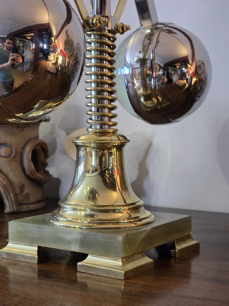 Antique French Industrial Clock – Late Victorian Era – Professionally Restored This lot features a rare late Victorian-era industrial clock, crafted in France with exceptional quality. The clock’s functional governor balls move up and down, controlled by a central spring retainer. The large glass globes over each dial magnify the silvered faces, enhancing its striking visual appeal. The case has undergone a full professional restoration. The brass has been carefully polished and waxed, while the nickel plating was expertly redone by a piano restoration specialist to ensure authentic, period-correct craftsmanship. The original dents and dings were intentionally preserved to maintain the clock’s historical integrity. The movement is an 8-day, time-only, lever-action mechanism. However, the barometer movement is missing, and while we have attempted to source a period-appropriate replacement, we have not yet found one. There are some chips to the edges of the glass, but they do not detract from the overall presentation. A rare and exceptional find, especially in this condition. Condition & Sale Terms: This clock is being sold for decorative purposes only. Mechanical functionality is not guaranteed, and it is sold As-Is, with no warranties or guarantees. Clock Measurements: "L x "W x "T Feel free to reach out with any questions before purchasing INTERNATIONAL SHIPPING NOTE: eBay requires signature confirmation on all purchases over $750, unfortunately due to USPS regulations signature cannot be done on international orders. Any international buyers will need to confirm in writing there approval to send without signature confirmation via ebay messages