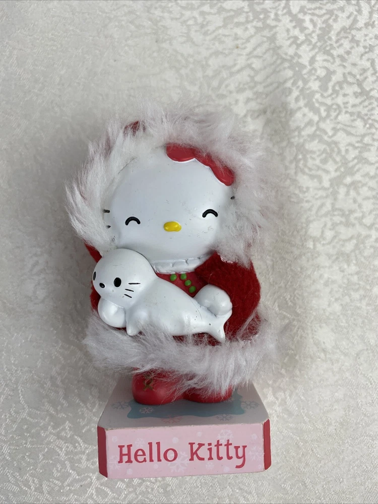 Limited Edition Hello Kitty Bubble Head Red Coat Christmas Decor White Seal Pre-Owned Some Scratches Review Photos For Details And Measurements
