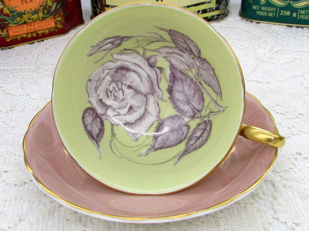 This is a rare Susie Cooper tea cup and saucer. Sandy tan, with a hand painted rose over a beige ground. The handle and footed base are fully overlaid with gold gilt, the rims are gold gilt trimmed. In very good vintage condition. No chips, cracks, crazing, or wearing of gold. Both items ping clearly when tapped. Please excuse the camera glare. I will gladly combine shipping for multiple items. Please contact me for a quote. Payments are expected within 3 days of auction ending, unless otherwise discussed beforehand. If you are combining multiple items, please wait for a revised invoice with the new shipping total. I am here to help in anyway that I can, so if you are unhappy with an item, please contact me first before leaving negative feedback. I believe anything can be worked out with communication. Thank you! I do not make any money from the shipping cost. I cover the cost of shipping supplies out of my own pocket. Please consider this before leaving other then a 5 star rating for shipping cost. I ship within 3 days of receiving payment. I ship by small package air to the United States, without tracking. If you require a tracking method, please let me know, and I will supply a tracking service, at extra cost. International shipping is by small package air, without a tracking number. I can ship with tracking, but the cost internationally, can be very high. Shipping to the United States can take from 6 to 14 business days, or longer, depending on customs. International shipping can take from 10 to 21 BUSINESS days, or more, depending on customs in your country. Auction Template Design © In My Cedar Chest - Unauthorized Duplication Prohibited. I will no longer ship to China without a tracking number. Please contact me for a quote before paying for your item.