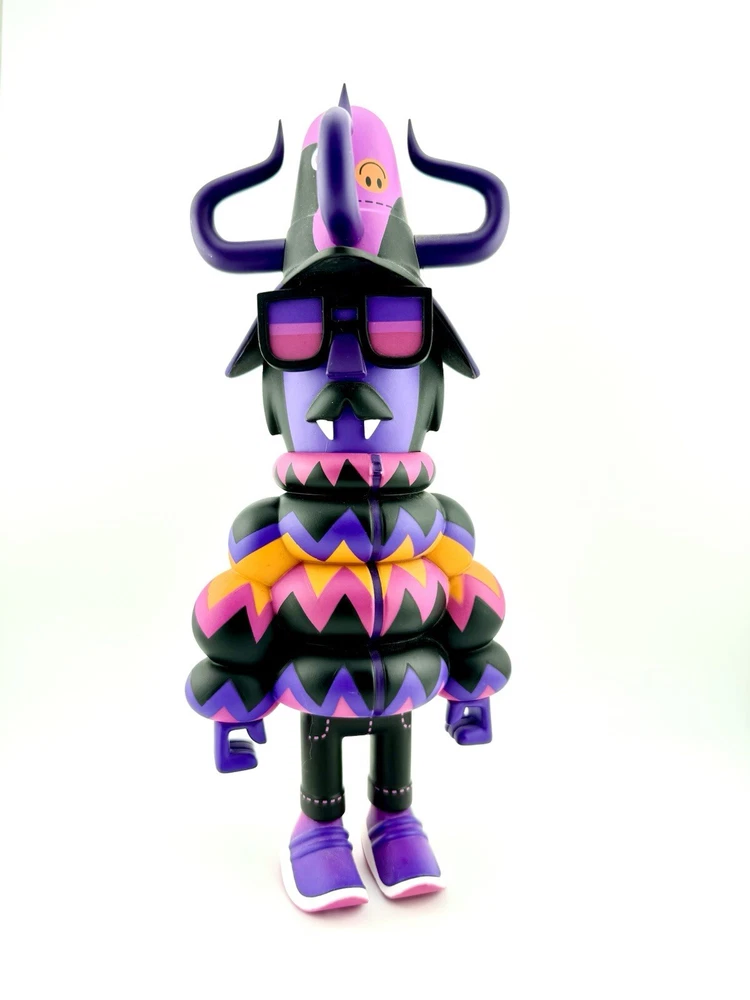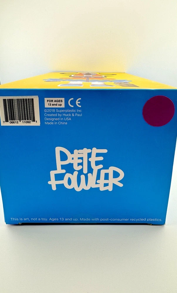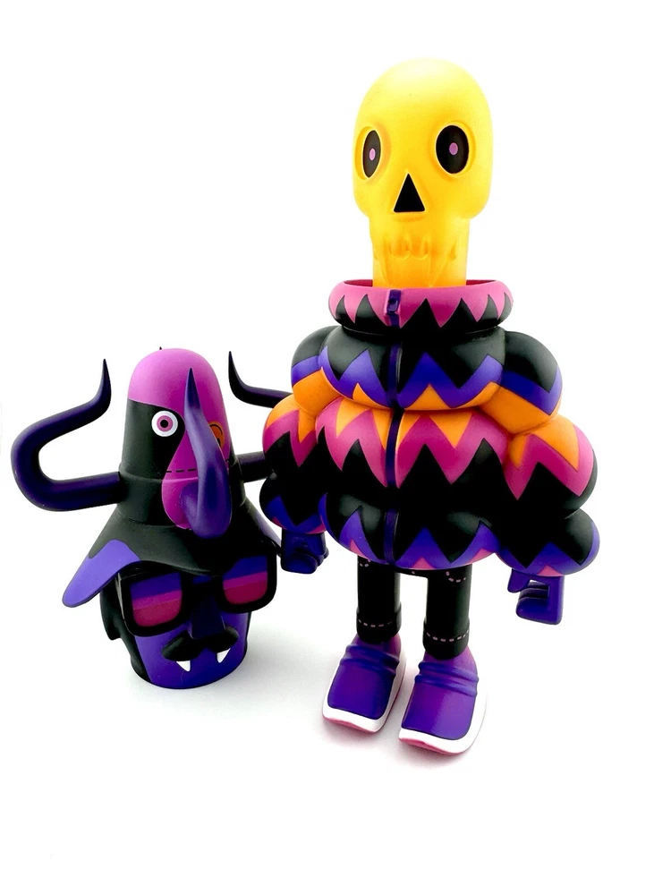 Legendary UK artist Pete Fowler blessed us with the third and final style of our favorite ten-inch tall vinyl raver. Maximillian Ca$h is an aging trust fund hipster who enjoys glow sticks and 8-tracks. Includes a removable head, revealing a transparent orange skull underneath. Ultra limited edition, just 333 produced Box opened for photos, feel free to msg with any questions. Thanks!