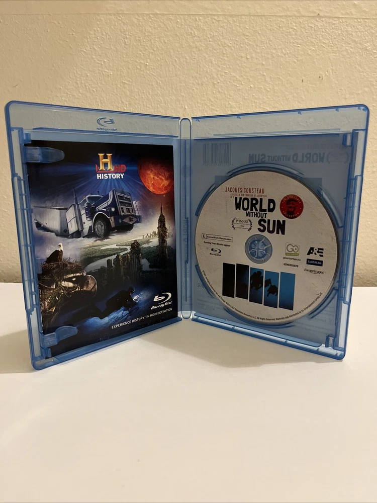 This is World Without Sun on Blu Ray with its slipcover. Tested & plays with a region A Blu Ray player. Disc is in very good condition. Has one or two light minuscule scratches, but plays well. Case is in good condition. Has slight wear from storage. See photos for more details.
