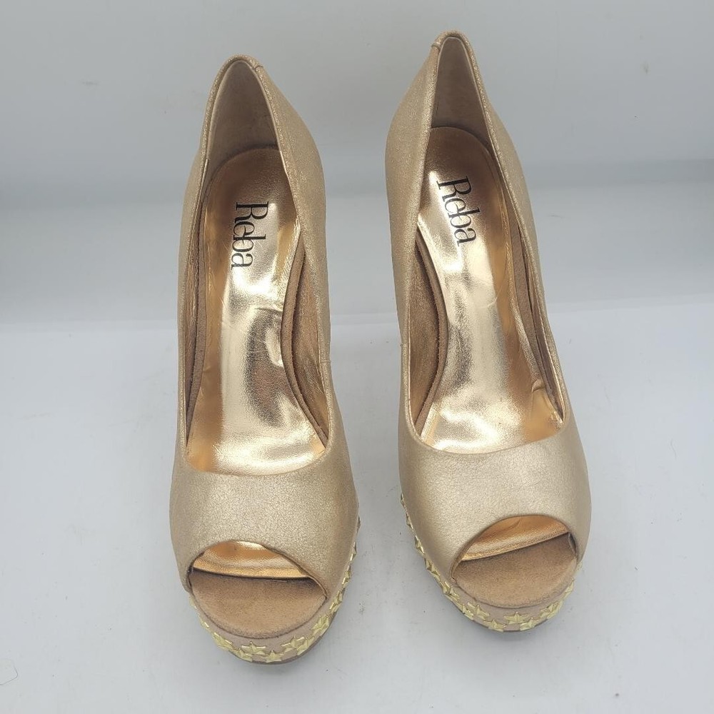 REBA Chucky Gold Corrina Peep Toe Heels Stars Size 7M Bin H