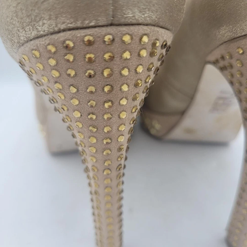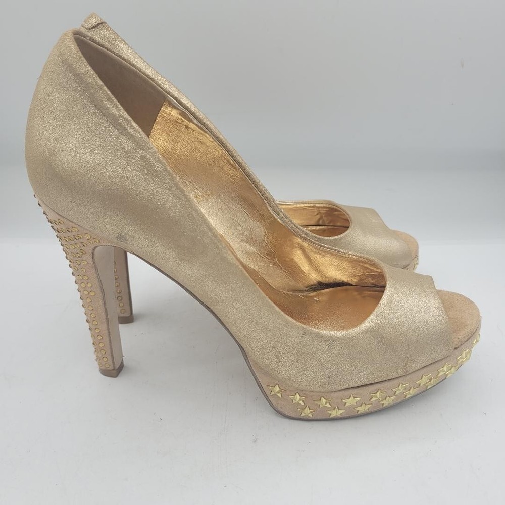 REBA Chucky Gold Corrina Peep Toe Heels with Stars Size 7M