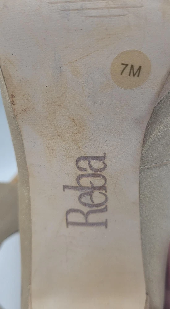 Brand:RebaType:HeelToe Shape:Peep ToeStyle:PlatformUS Shoe Size:7MSeller Notes:“Heels are in GREAT used condition”Upper Material:LeatherColor:GoldDepartment:Women