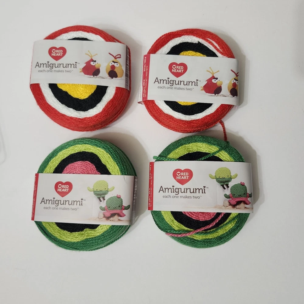 RED HEART Amigurumi Super Fine Yarn Cactus Bird Lot Of 4