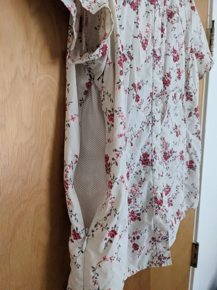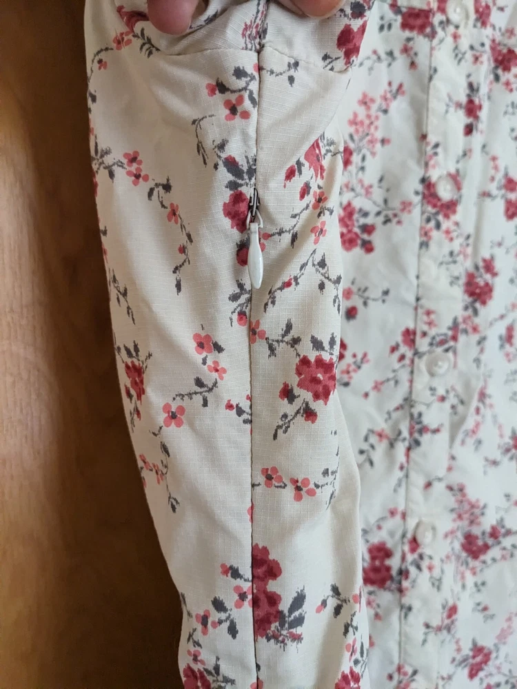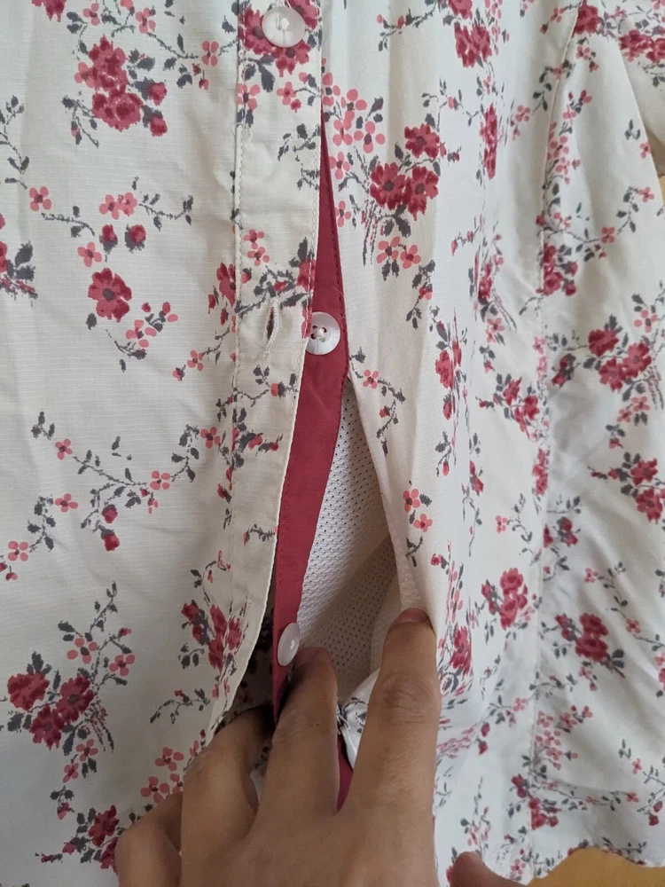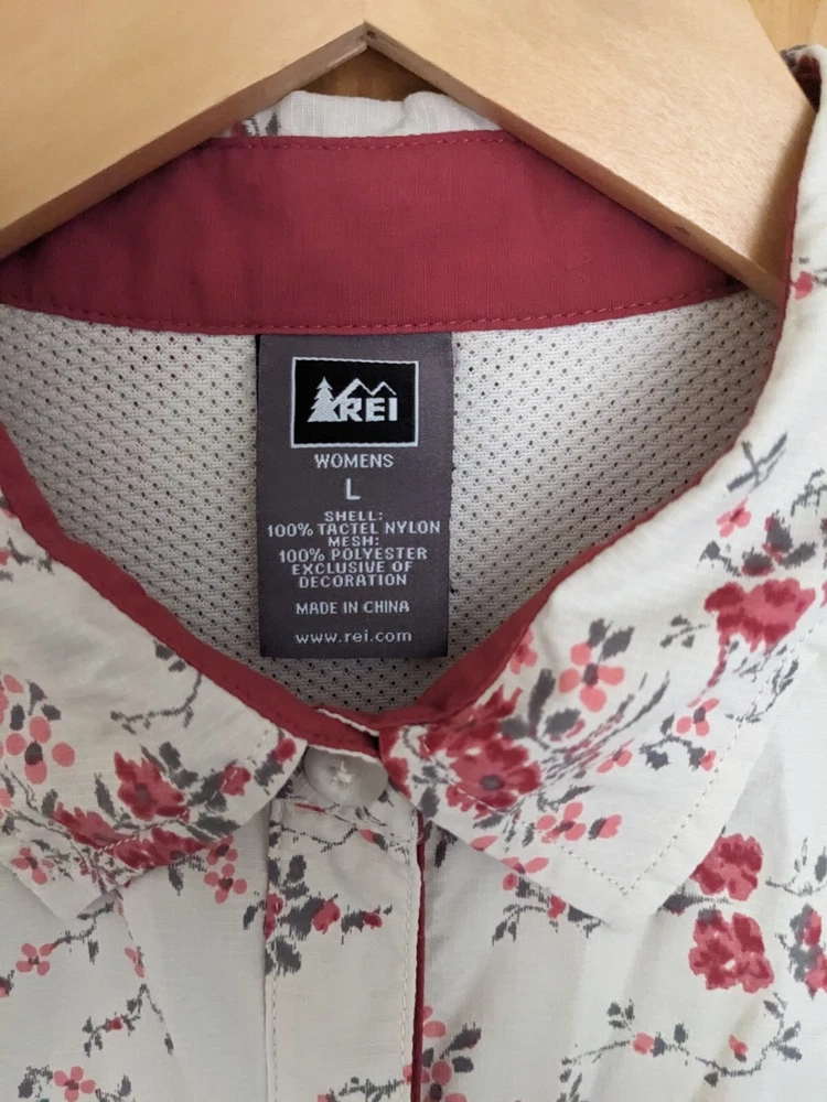 This REI Fishing shirt for women is perfect for your next outdoor adventure. The shirt is made of breathable and easy-care nylon material with a mesh lining for added comfort. It features a collared neckline and button closure, with short casual sleeves and a strapless design. The beige floral pattern adds a modern touch to the shirt, making it suitable for both casual and travel occasions. The shirt is machine washable and has a regular fit, making it a great addition to your wardrobe. Get ready to go fishing or hiking with this stylish and functional shirt from REI.