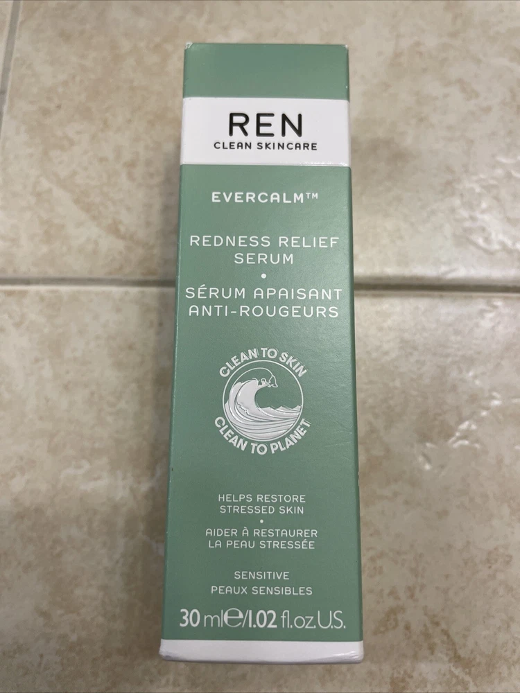 REN Clean Skincare Evercalm Redness Relief Face Serum 1.02 oz 30 ml NEW In Box.