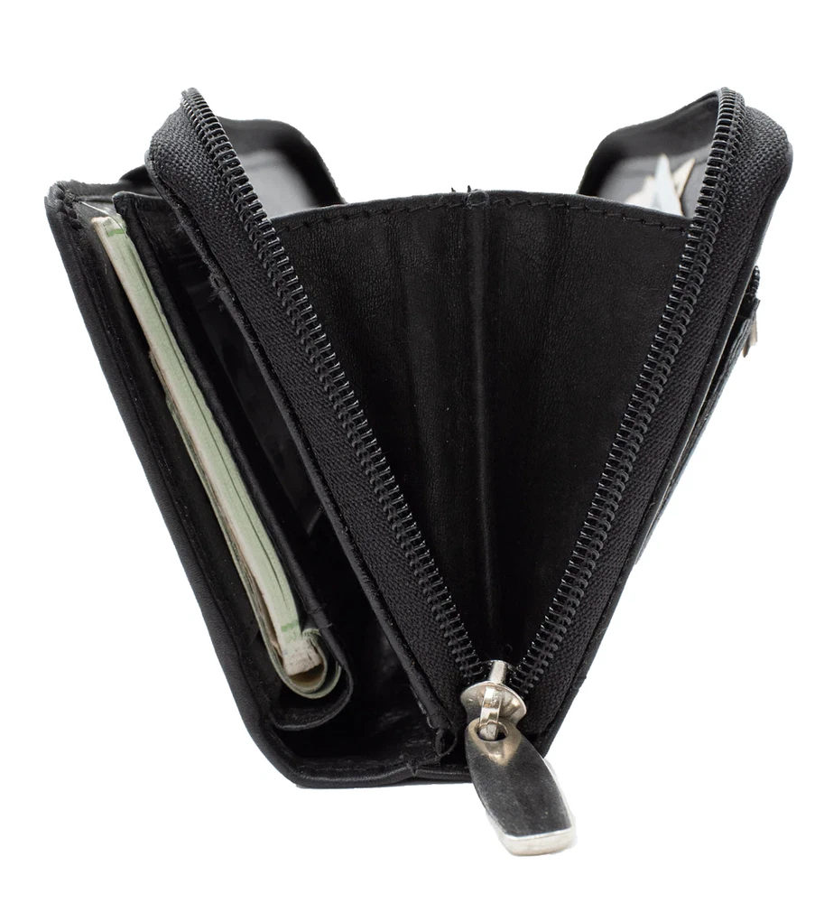 Features: Material: Genuine Leather Best Quality material with a lot of Compartments Length: about 7.25" x 3.25" approx. Inside Detail: more than Credit card holders, picture ID, Checkbook Slot, other Money Note inserts. Inside Zippered compartment